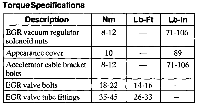 Torque Specifications: