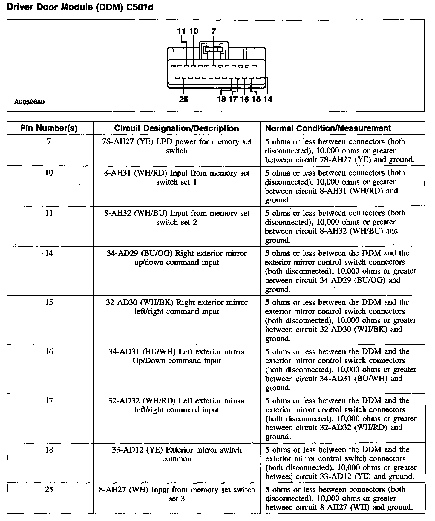 Driver Door Module (DDM) C501d: