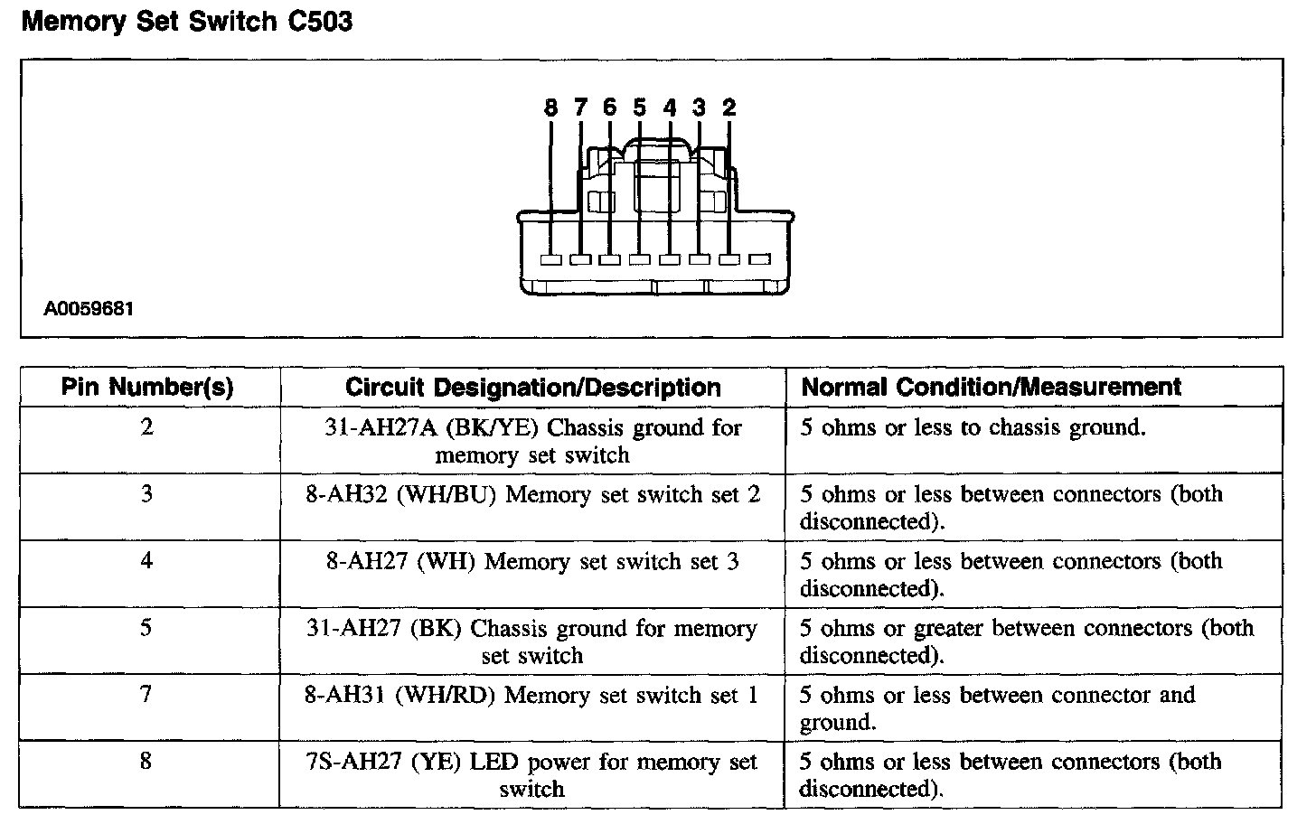 Memory Set Switch C503: