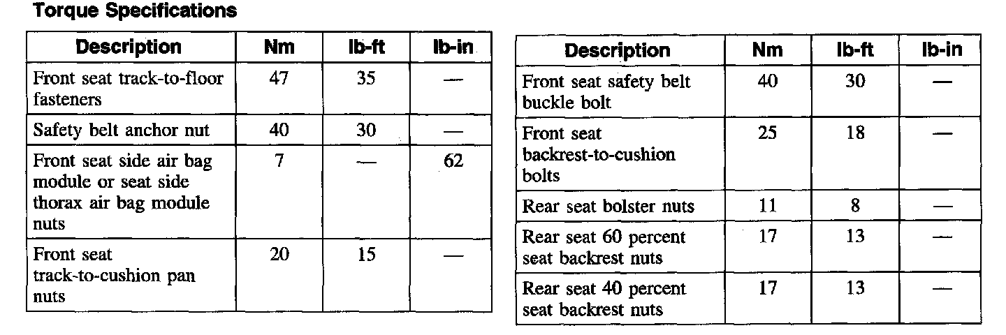 Seats: Specifications