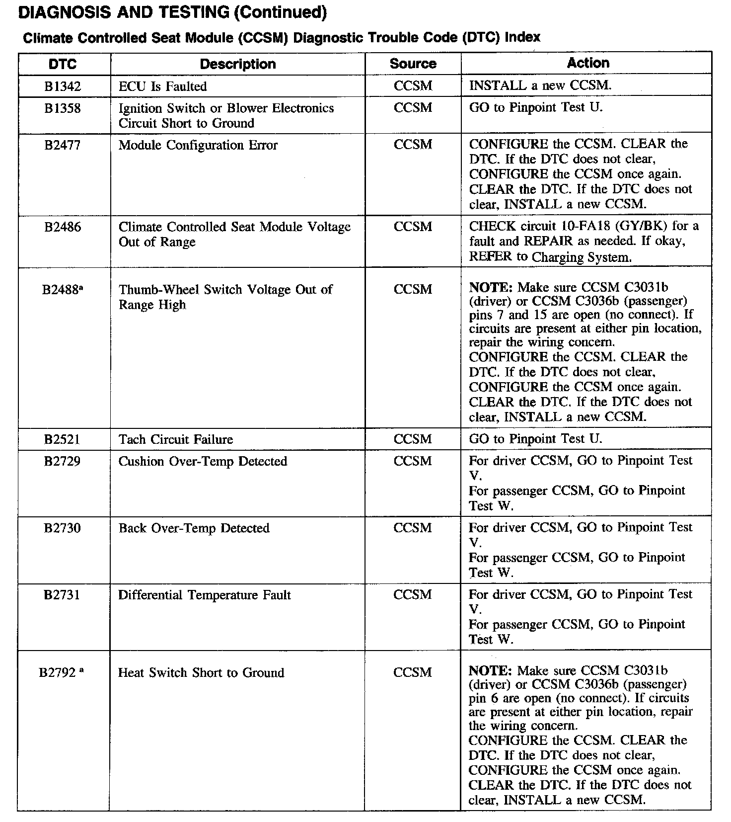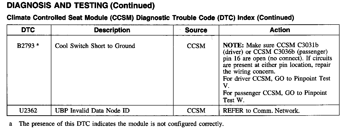 Climate Controlled Seat Module Diagnostic Trouble Code Index