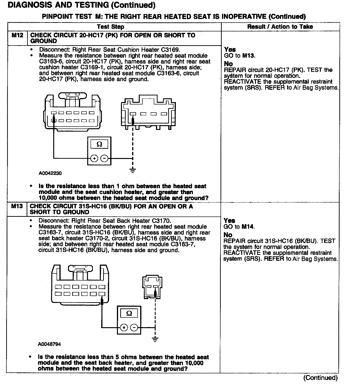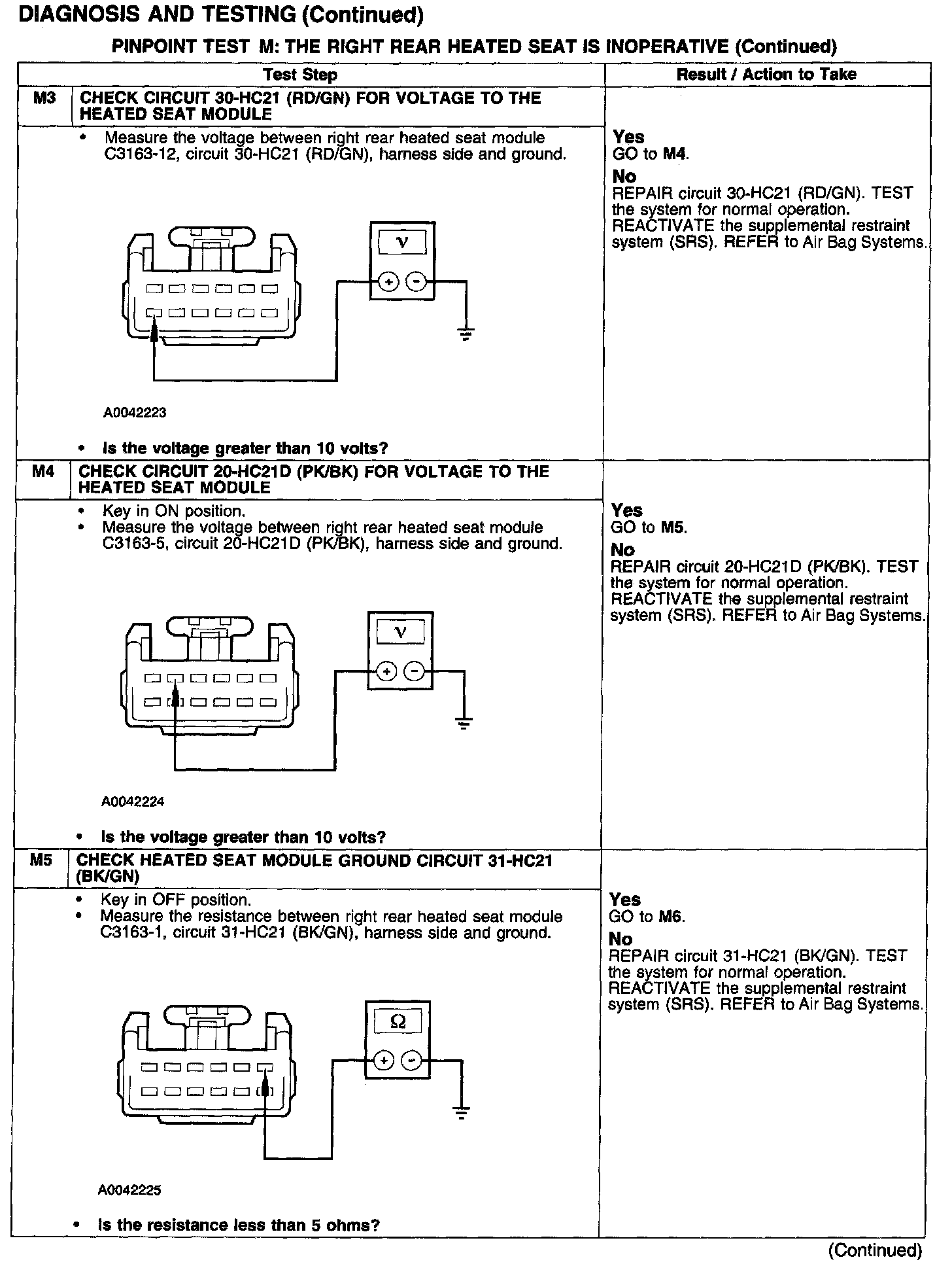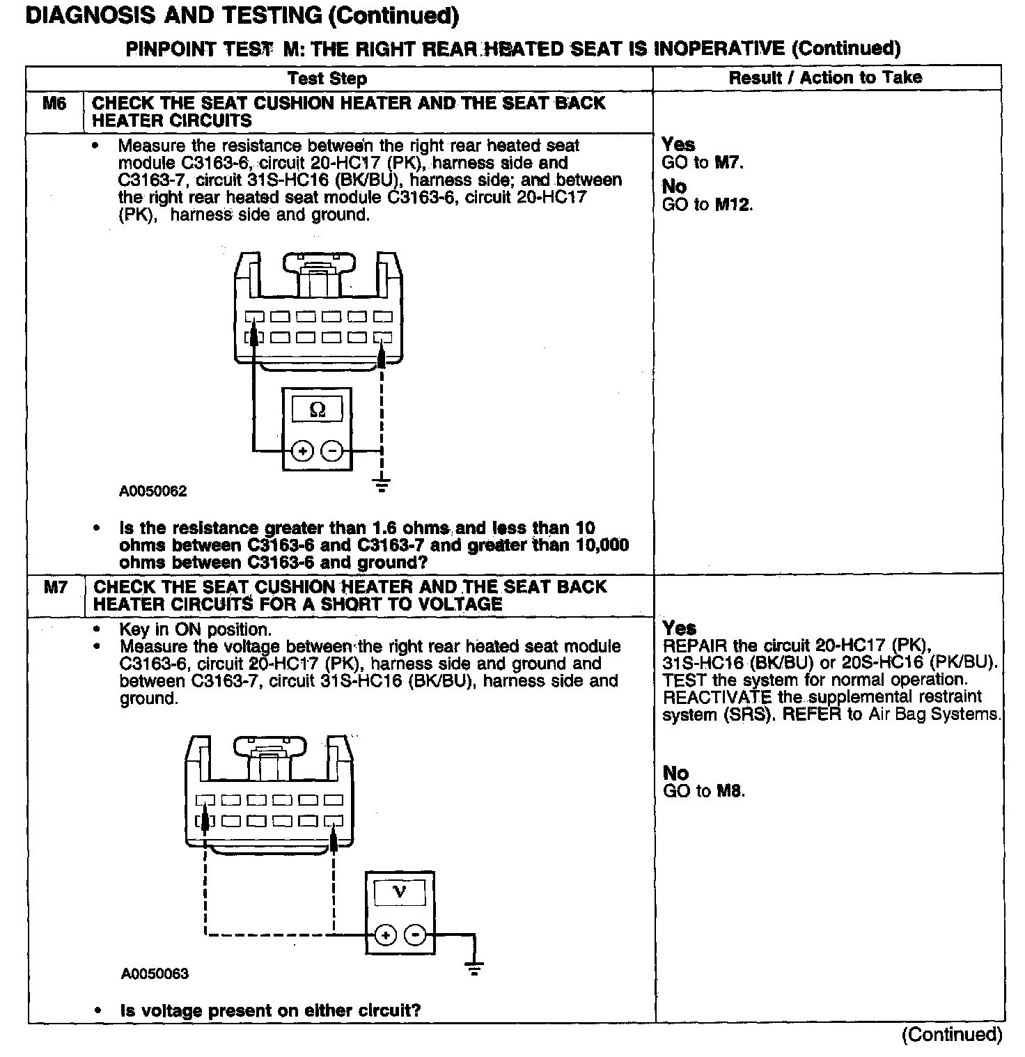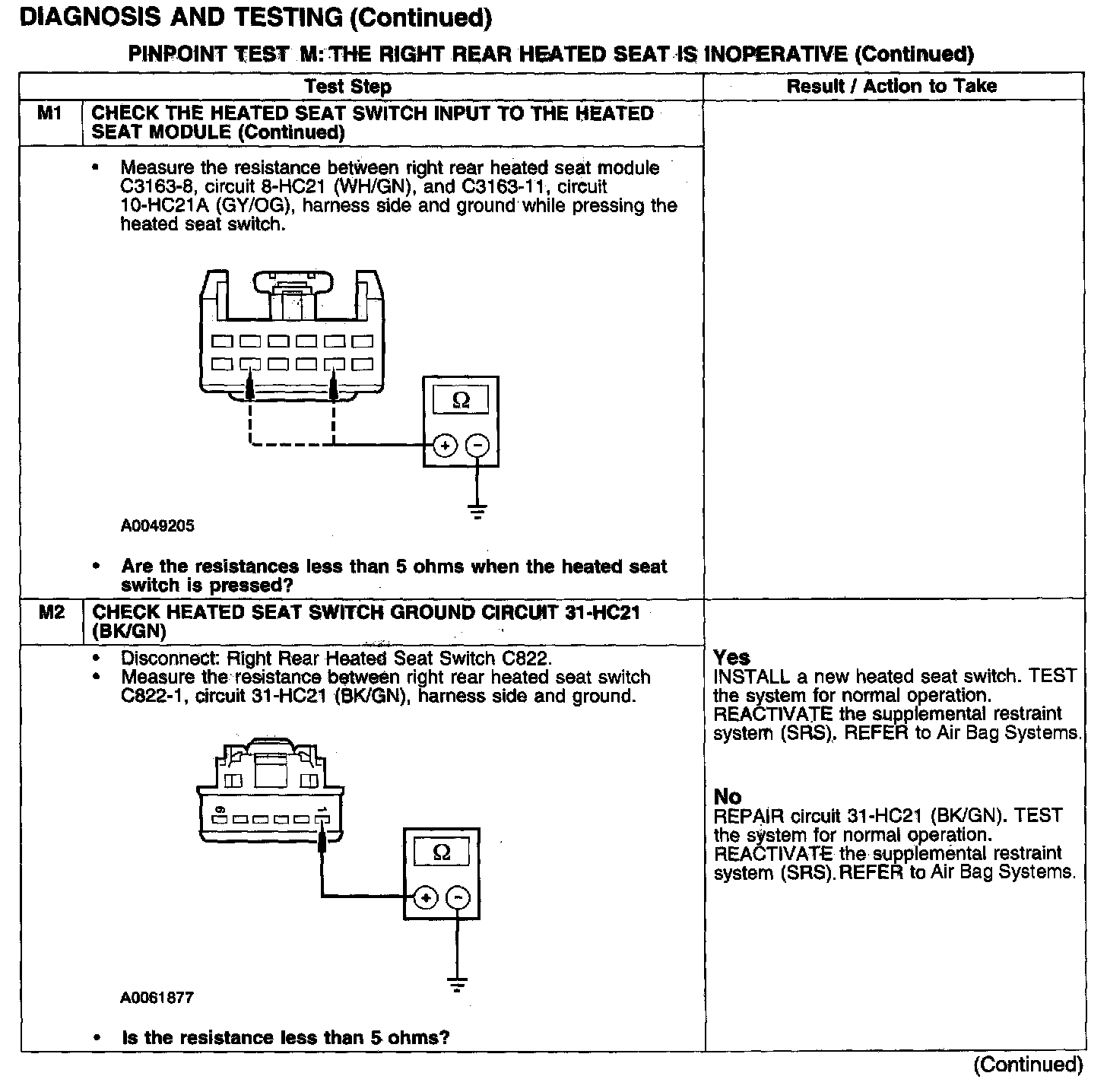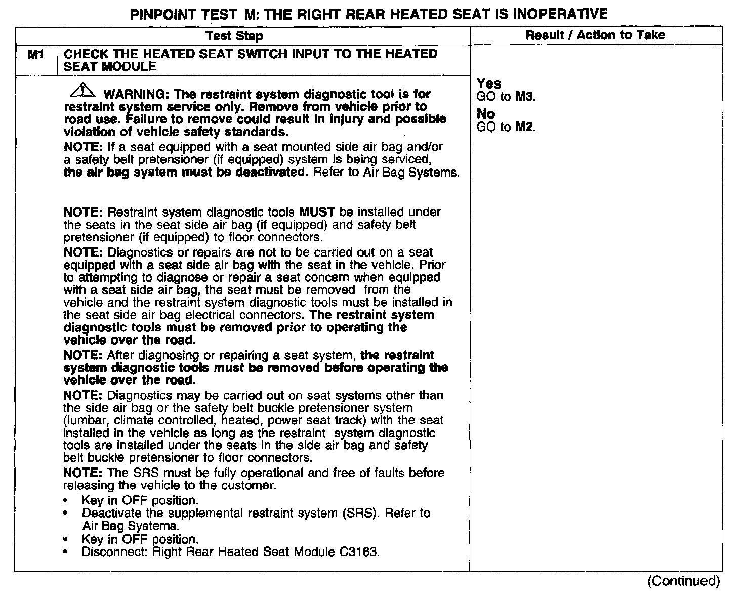 PINPOINT TEST M: THE RIGHT REAR HEATED SEAT IS INOPERATIVETest M1:
