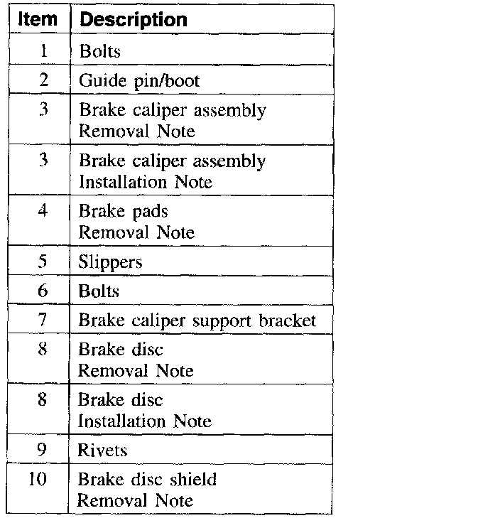 Item 10: Brake Disc Shield Removal Note