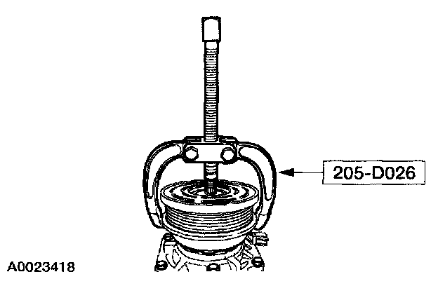 Using the special tool, remove the A/C clutch pulley.