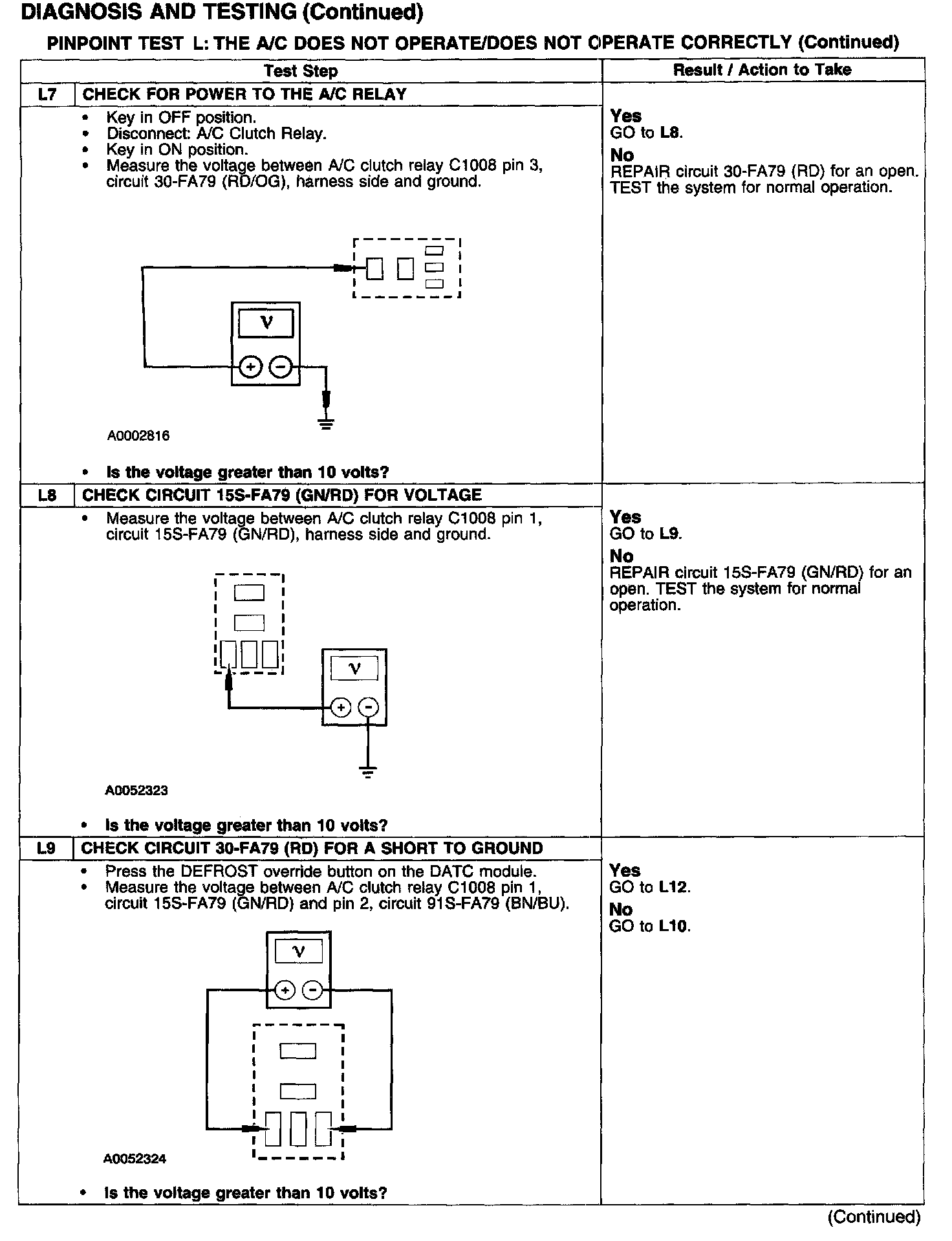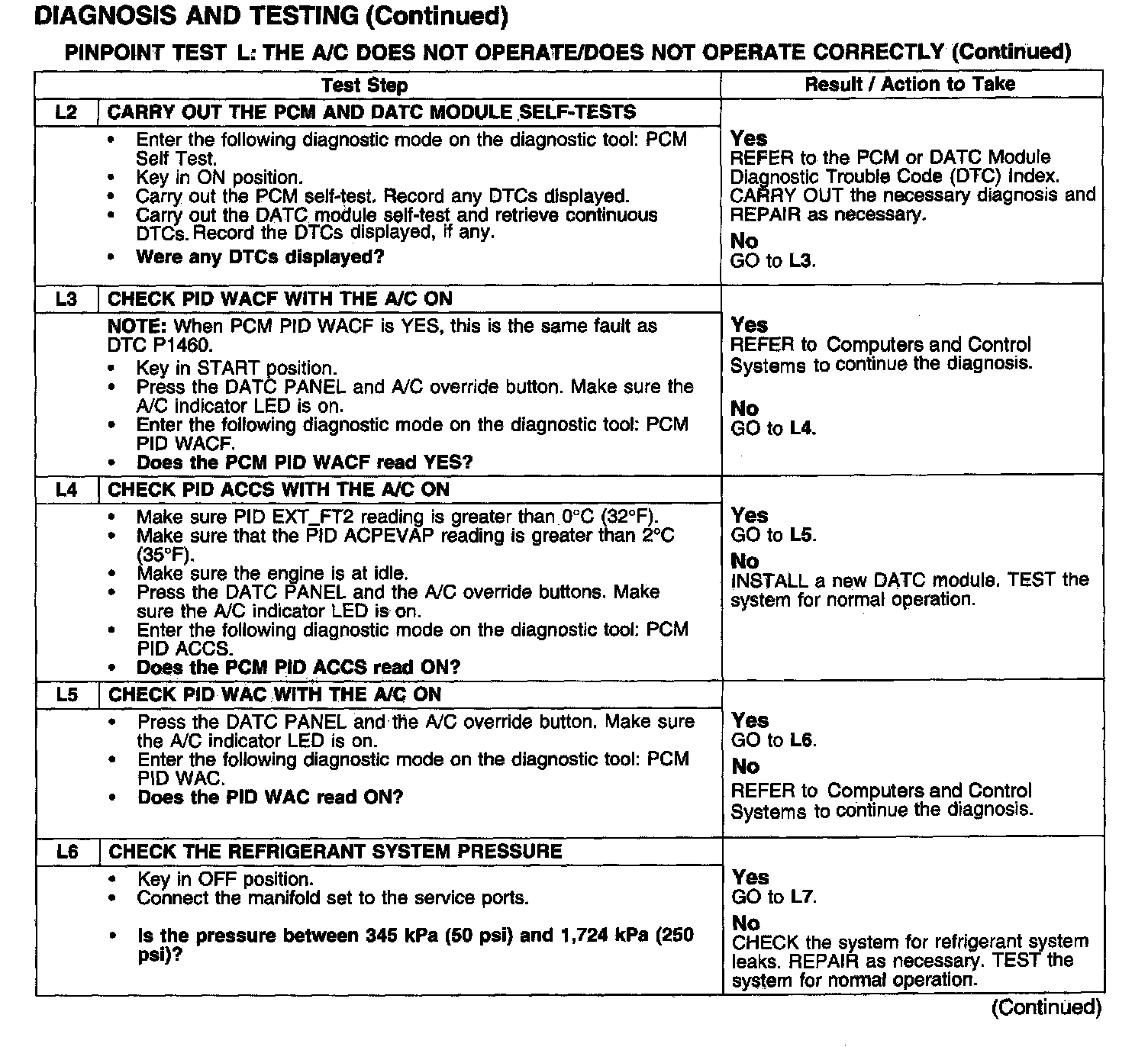 PINPOINT TEST L: THE A/C DOES NOT OPERATE/DOES NOT OPERATE CORRECTLYTest L1: