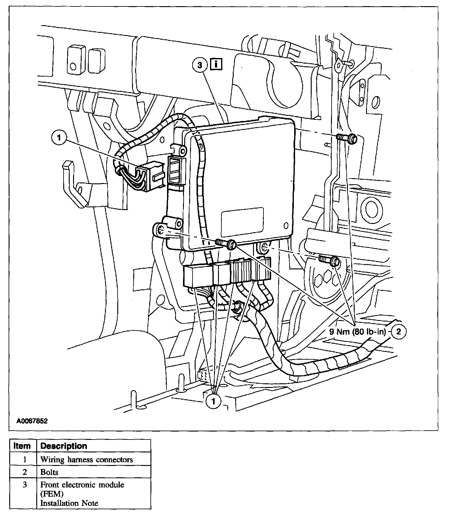 1. Once the FEM is installed, it is necessary to download the module configuration information from the diagnostic tool into the new module. Refer to Module Configuration.