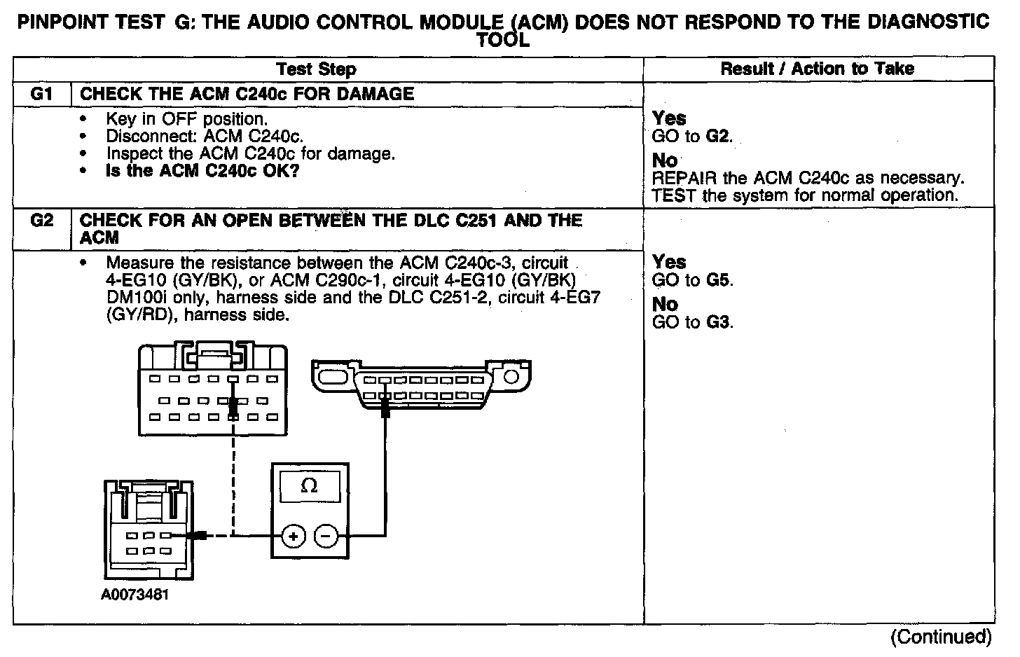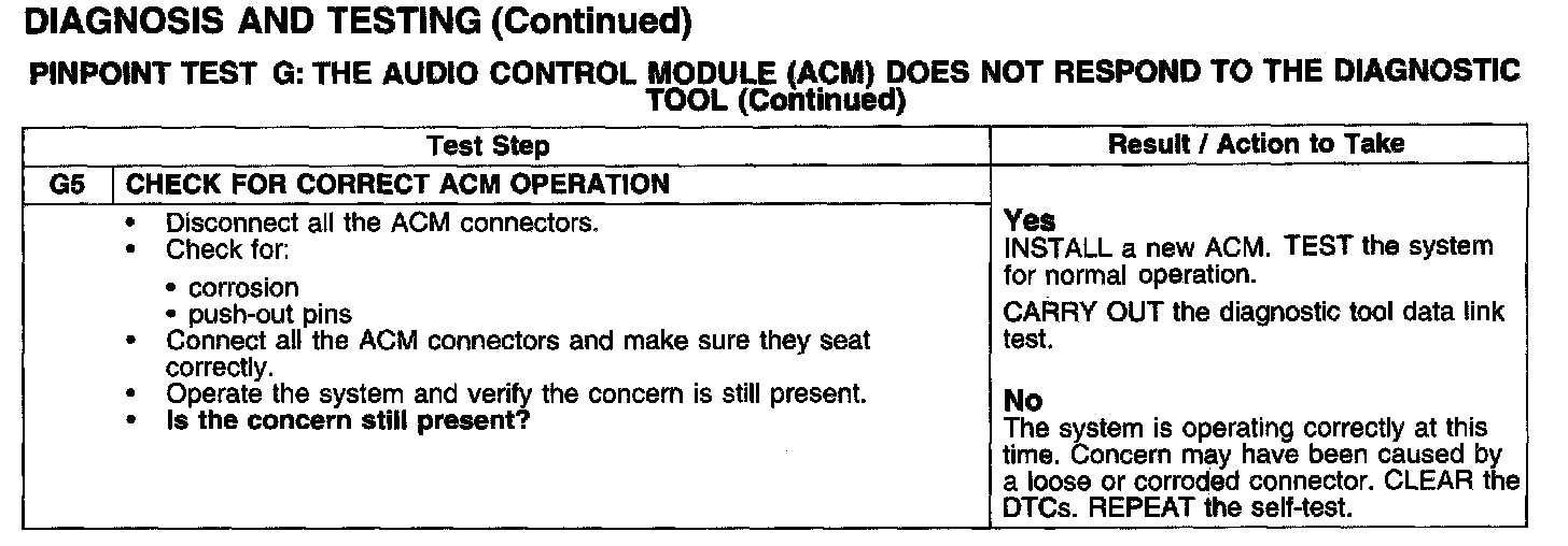 PINPOINT TEST G: THE AUDIO CONTROL MODULE (ACM) DOES NOT RESPOND TO THE DIAGNOSTIC TOOL