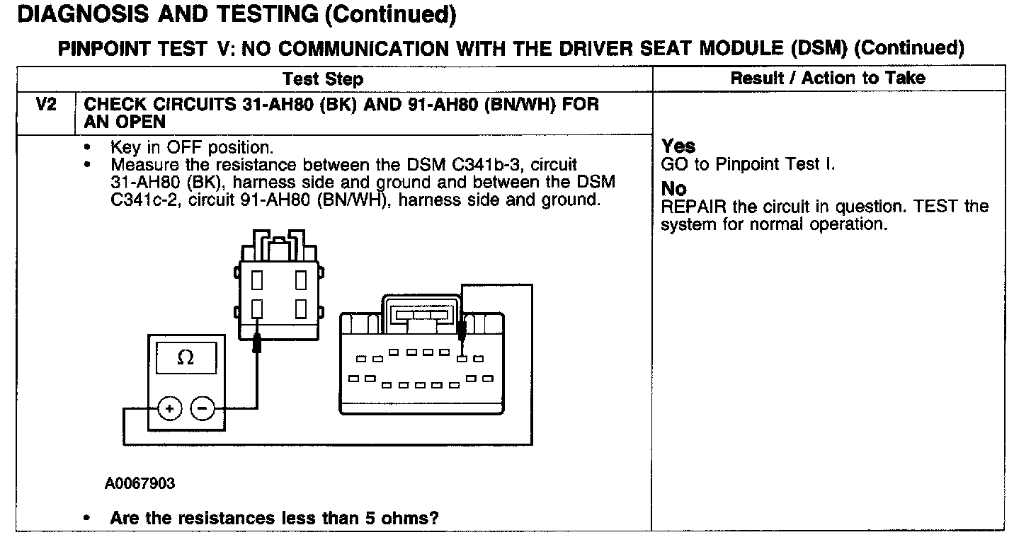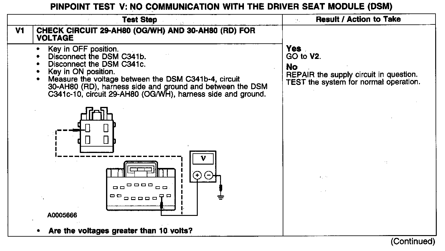 PINPOINT TEST V: NO COMMUNICATION WITH THE DRIVER SEAT MODULE (DSM)Test V1: