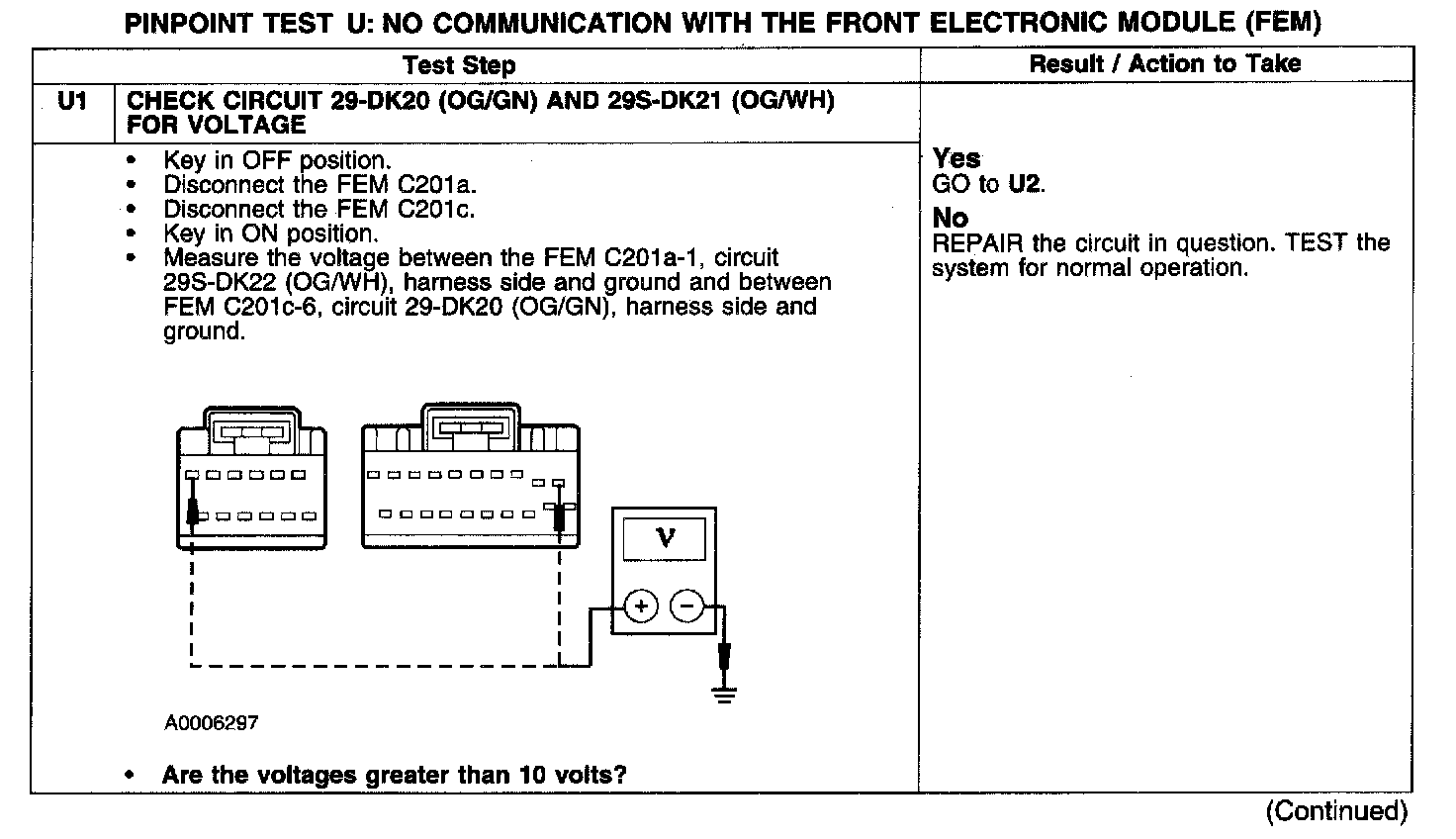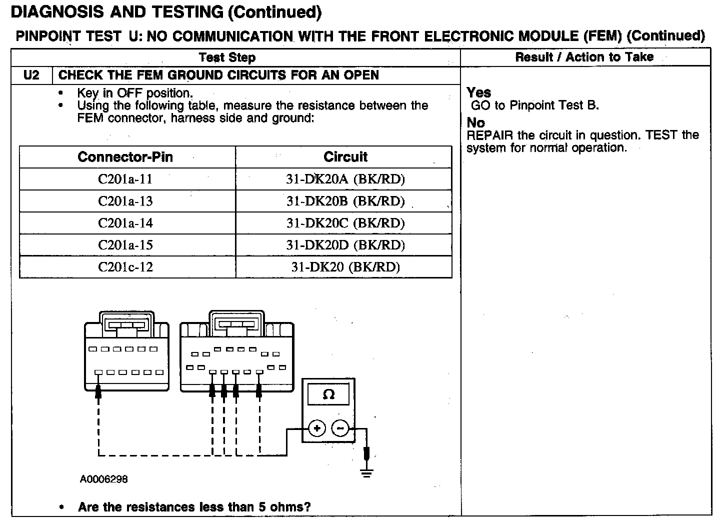 PINPOINT TEST U: NO COMMUNICATION WITH THE FRONT ELECTRONIC MODULE (FEM)Test U1:
