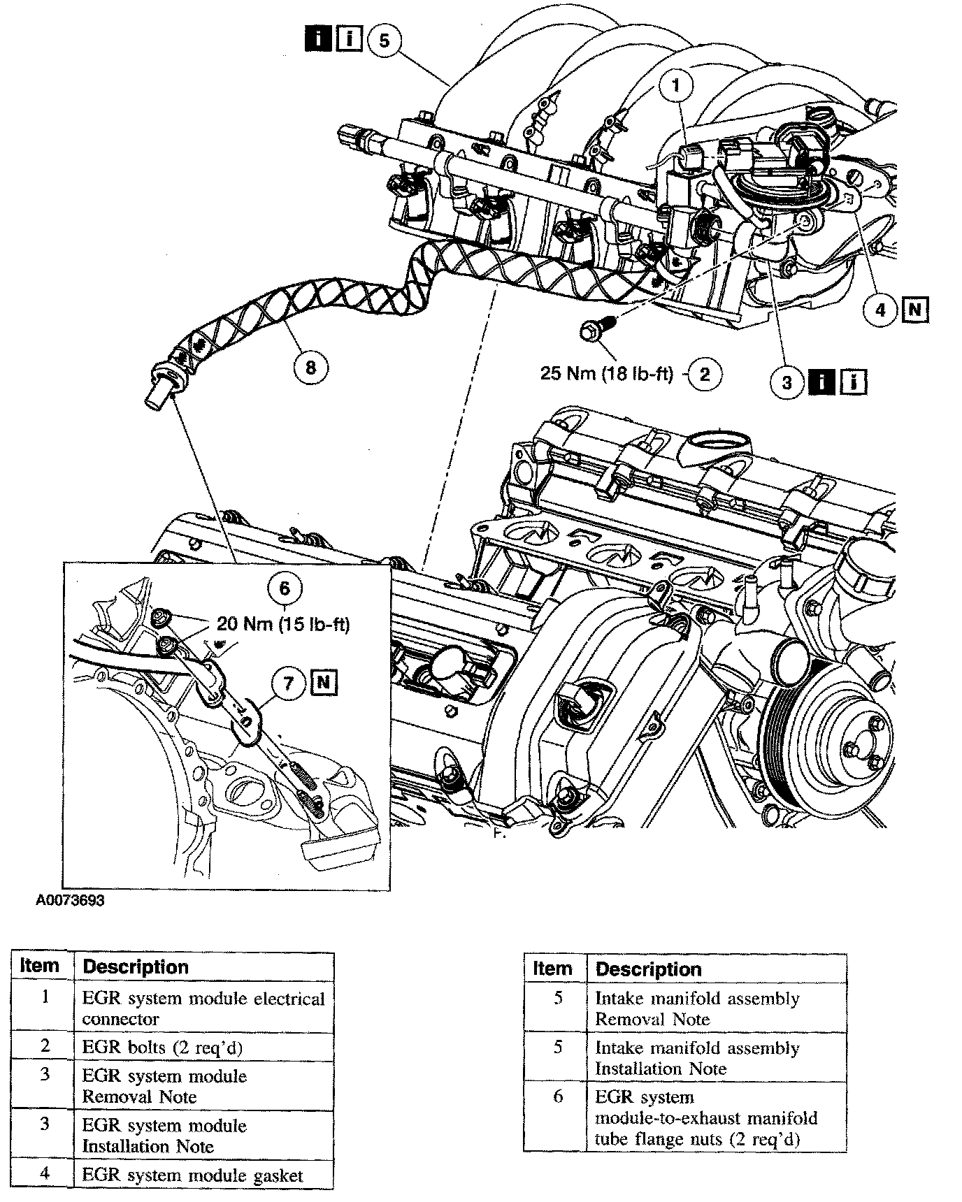 2. Disconnect the EGR system module-to-exhaust manifold tube from the EGR system module.