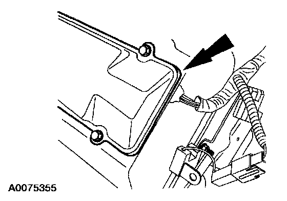 Lift up the wire harness and apply a 12.7 mm (0.5 in) bead of silicone sealer in the notch of the valve cover.
