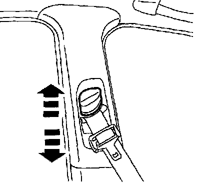 6. Operate the front seat shoulder strap adjuster. Make sure it travels from top to bottom and locks correctly in each position.