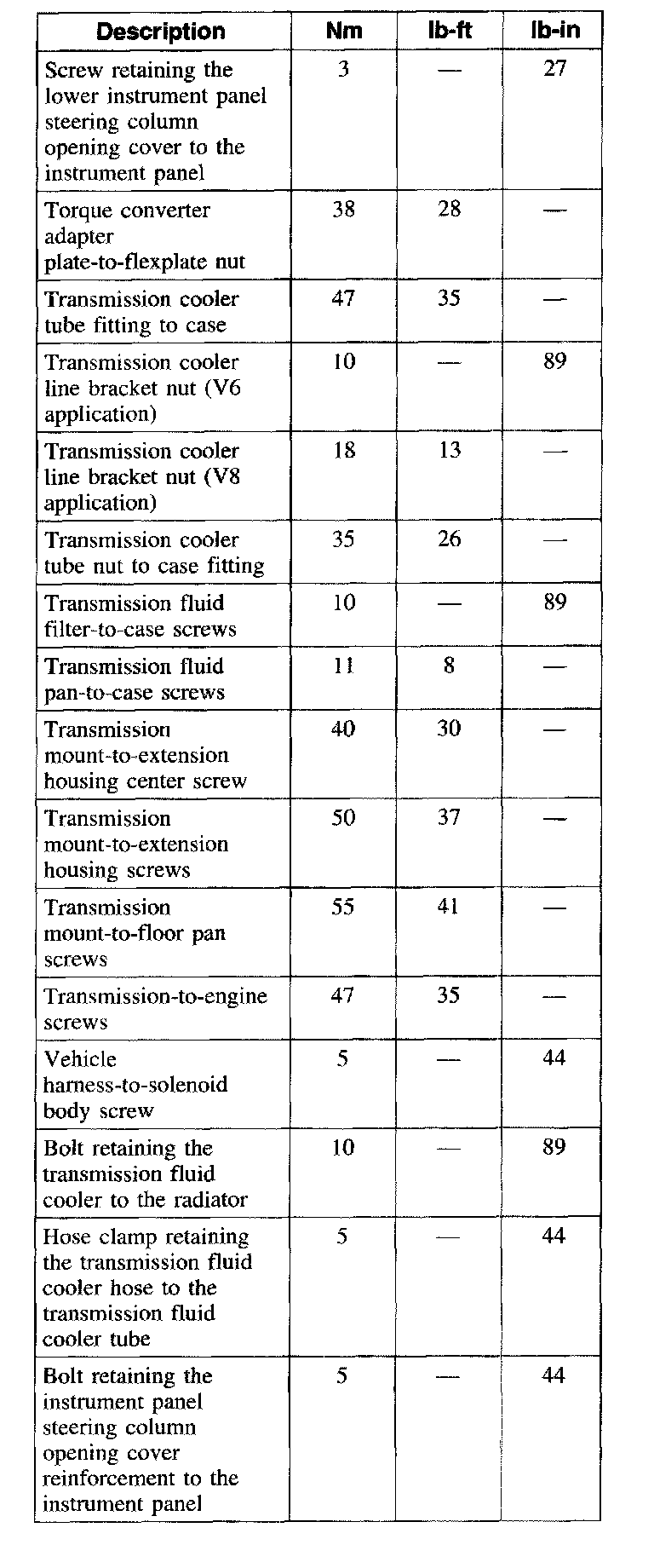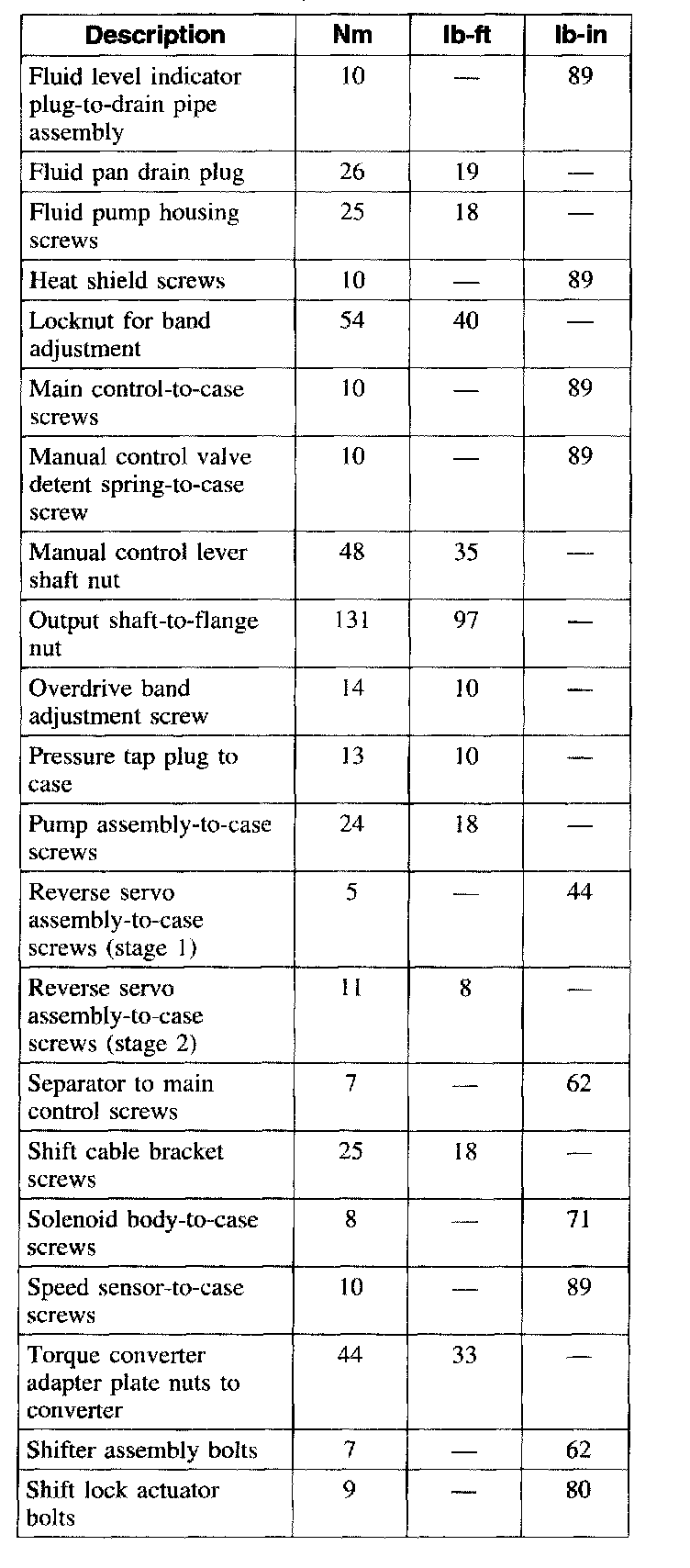 Torque Specifications