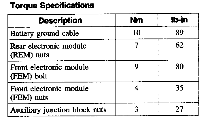 Torque Specifications: