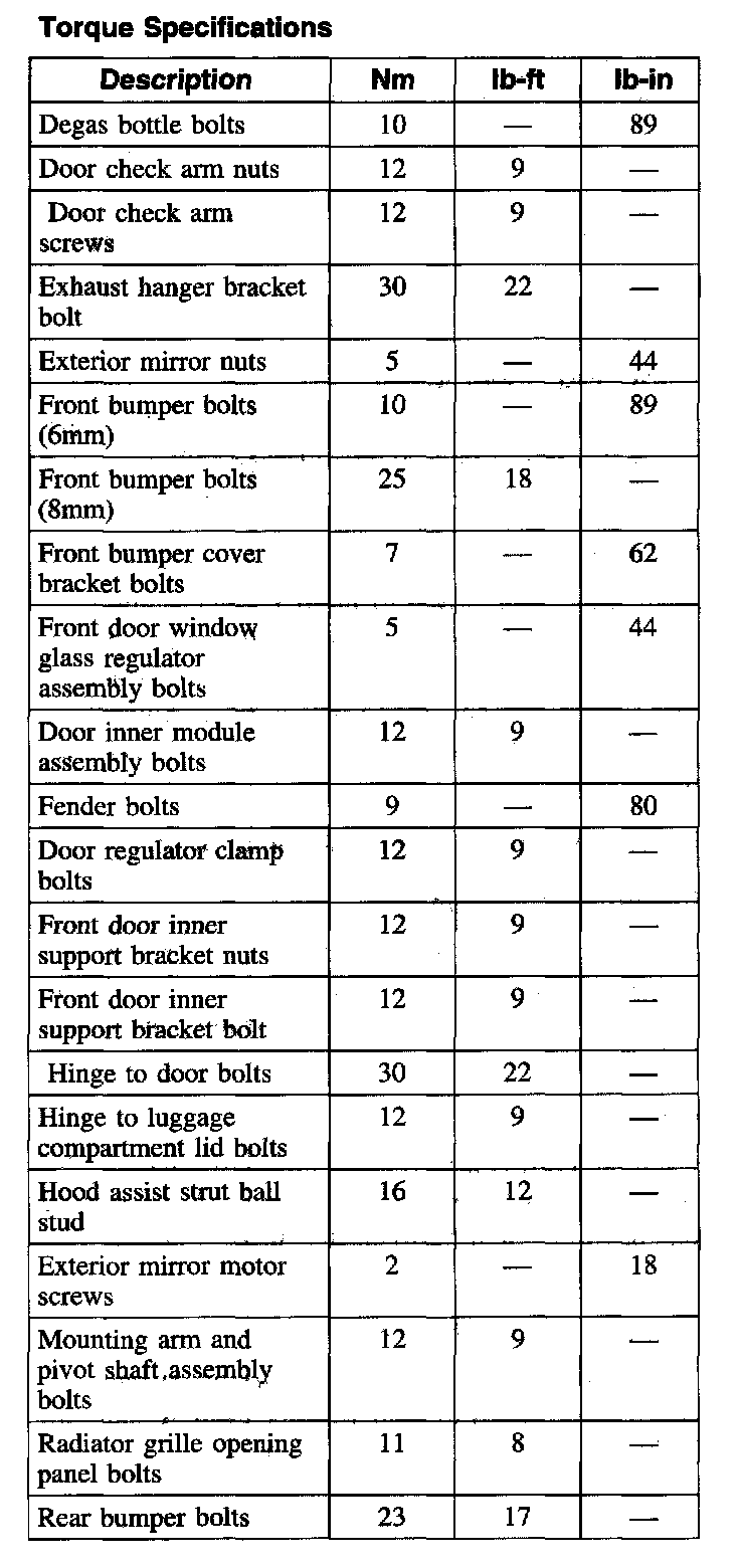 Torque Specifications, Part 1: