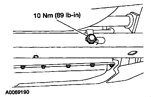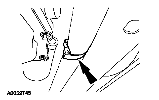 2. Remove the LH A/C suction line lower bracket bolt and position the bracket rearward.