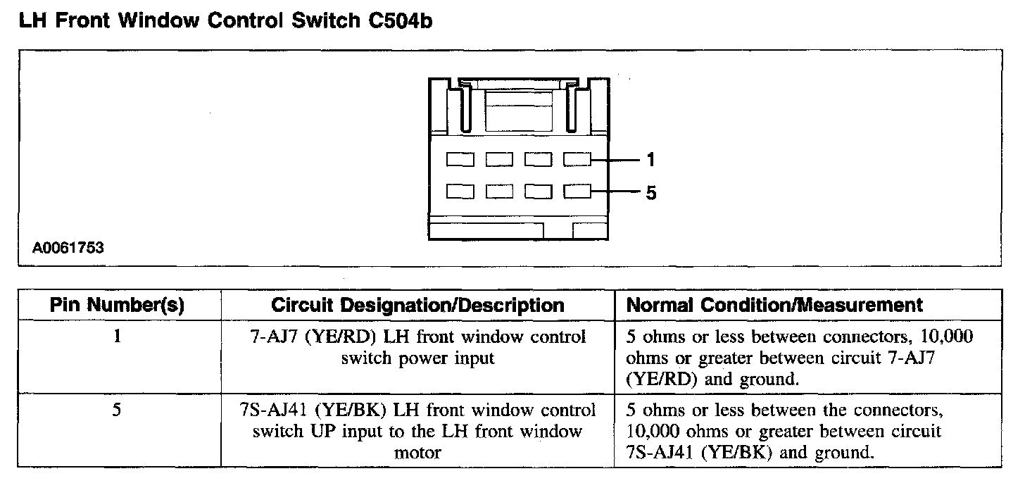 LH Front Window Control Switch C504b: