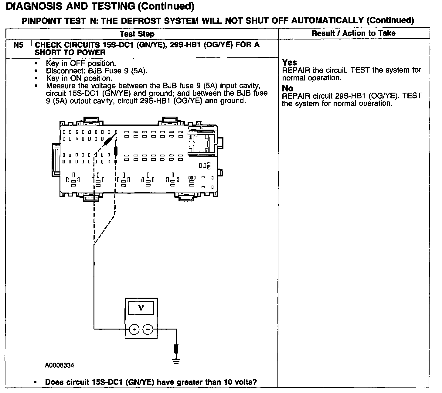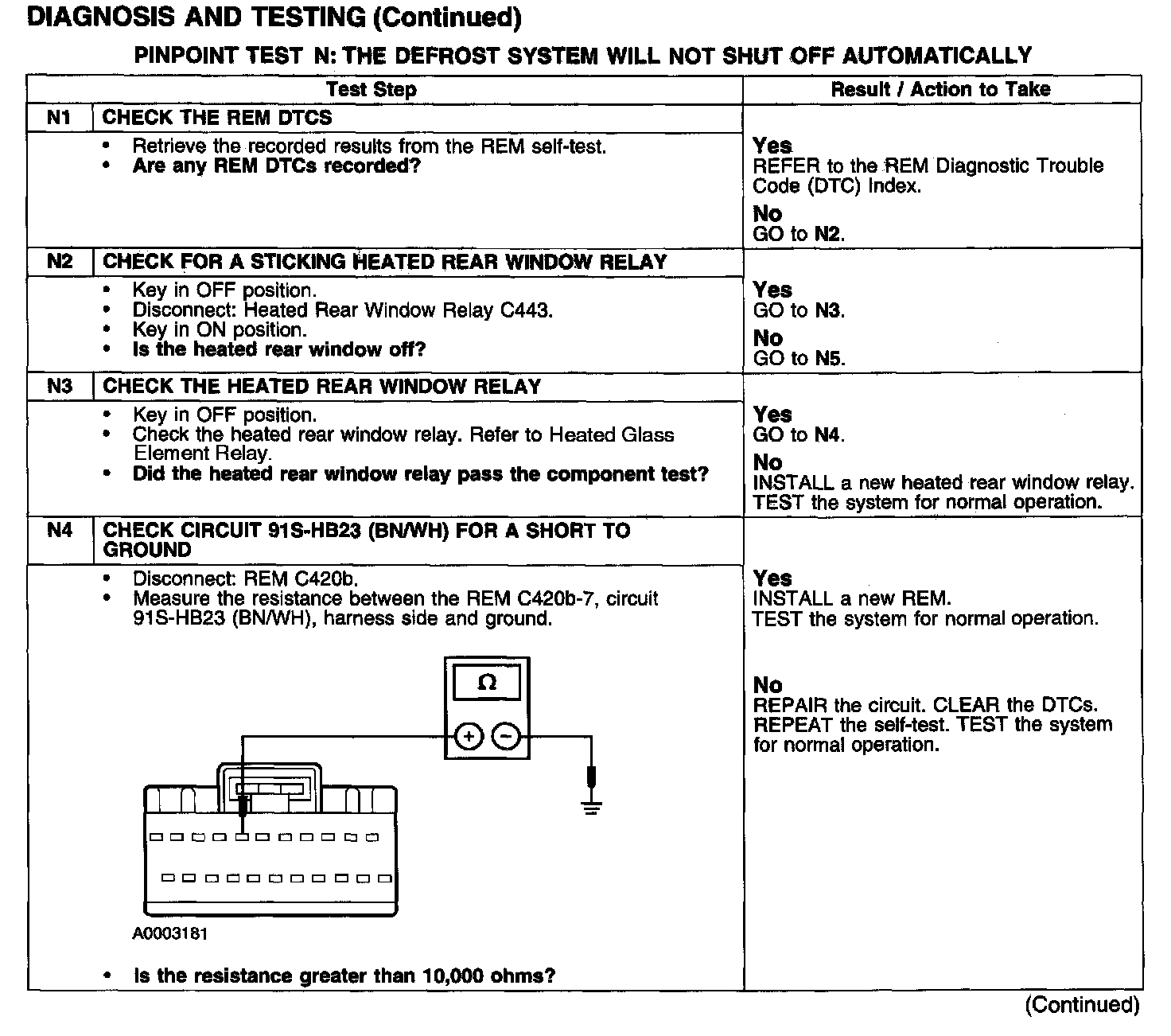 PINPOINT TEST N: THE DEFROST SYSTEM WILL NOT SHUT OFF AUTOMATICALLYTest N1-N4:
