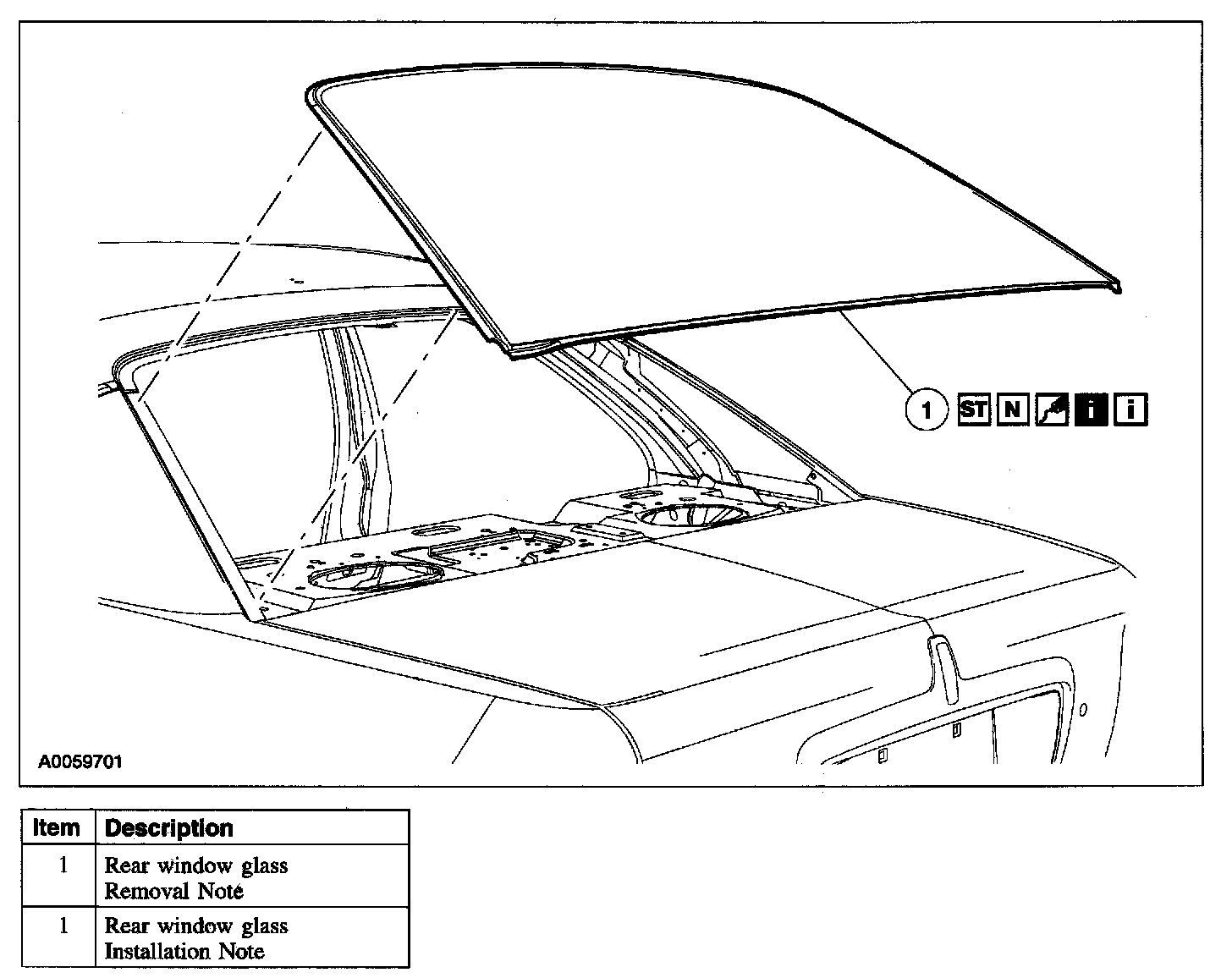 2. Use tape or non-permanent marking pencil to make alignment marks on the rear window glass (preferably at the setting blocks), and the body to aid in the installation alignment of the rear window glass.