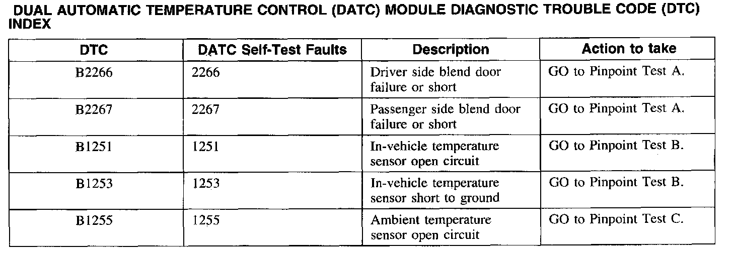 Dual Automatic Temperature Control (DATC) Module DTC Index