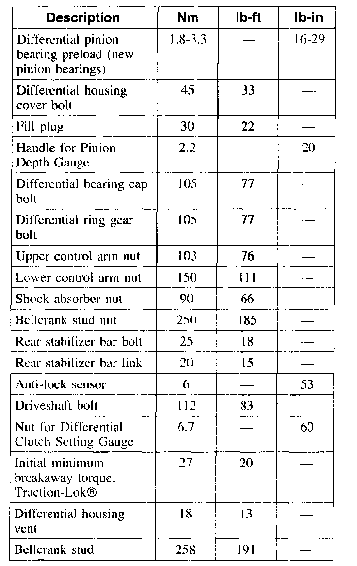 Torque Specifications