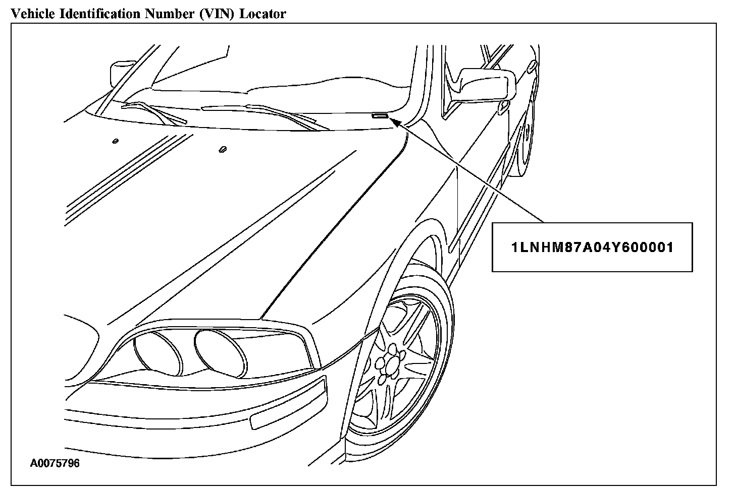 The vehicle identification number (VIN) is a seventeen-digit combination of letters and numbers. The VIN is stamped on a metal tab riveted on the instrument panel, top upper left of the dash. The VIN is also found on the vehicle certification (VC) label.
