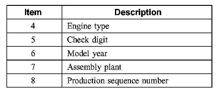 IDENTIFICATION CODESVehicle Identification Number (VIN) Locator: