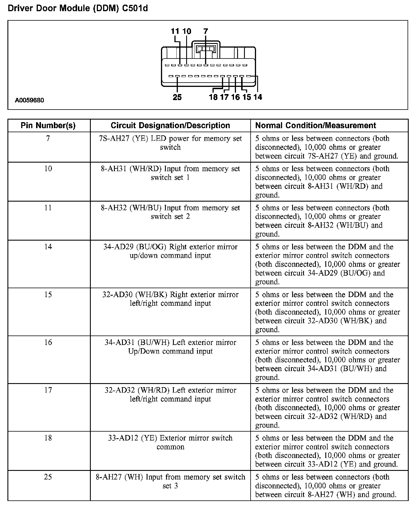 Driver Door Module (DDM) C501d: