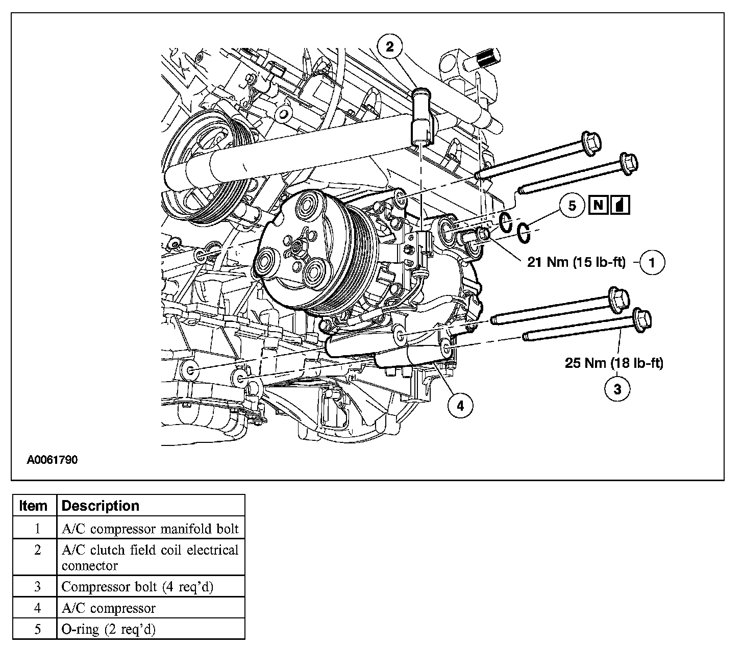 - New O-ring seals, lubricated in clean PAG oil, must be installed before reconnecting any A/C fitting that has been disconnected.