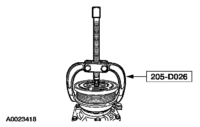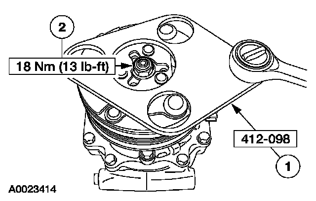 1. CAUTION: Do not use air tools. Damage to the A/C clutch pulley or A/C compressor may result.