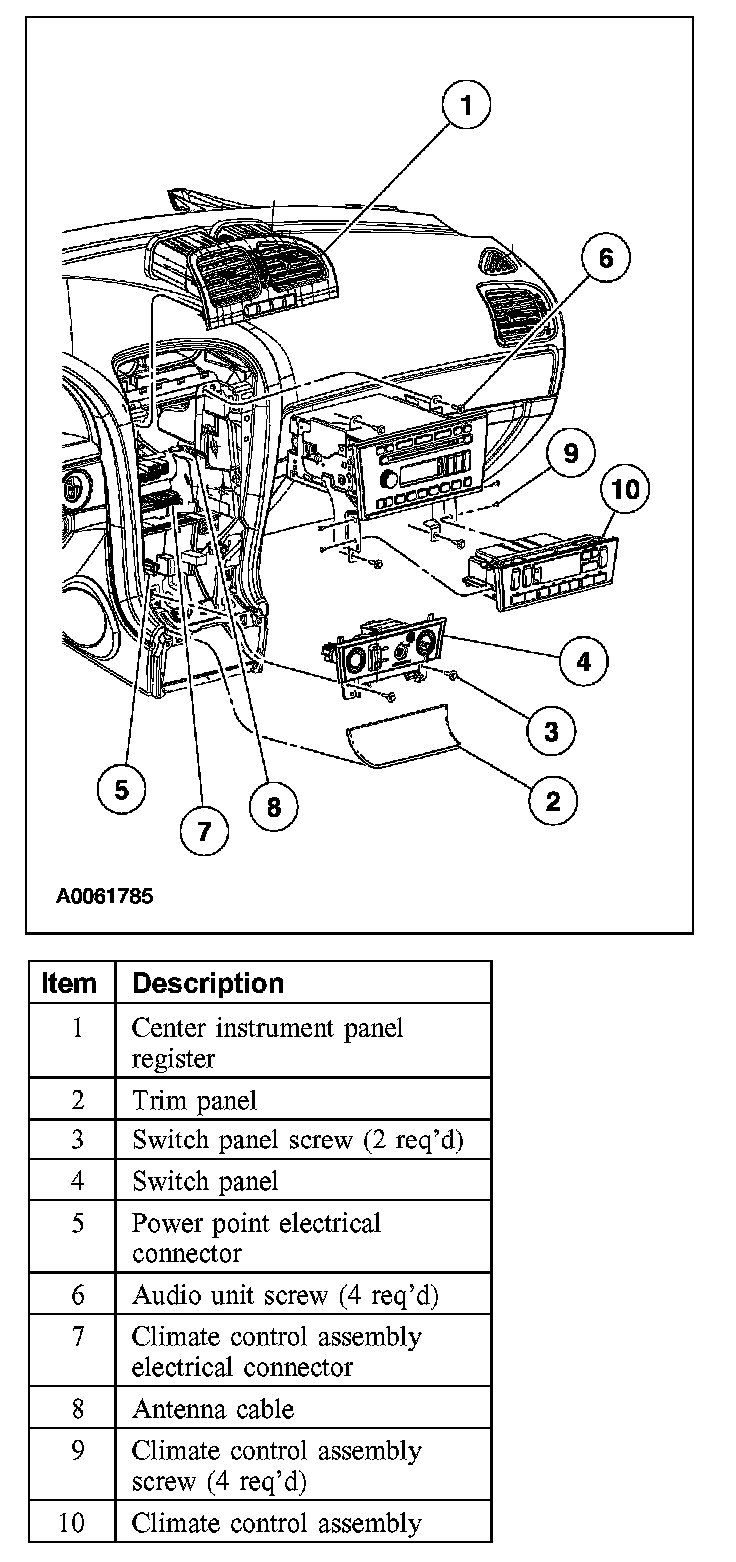 NOTE: If installing a new climate control assembly (DATC module), the new module must be configured for the vehicle.