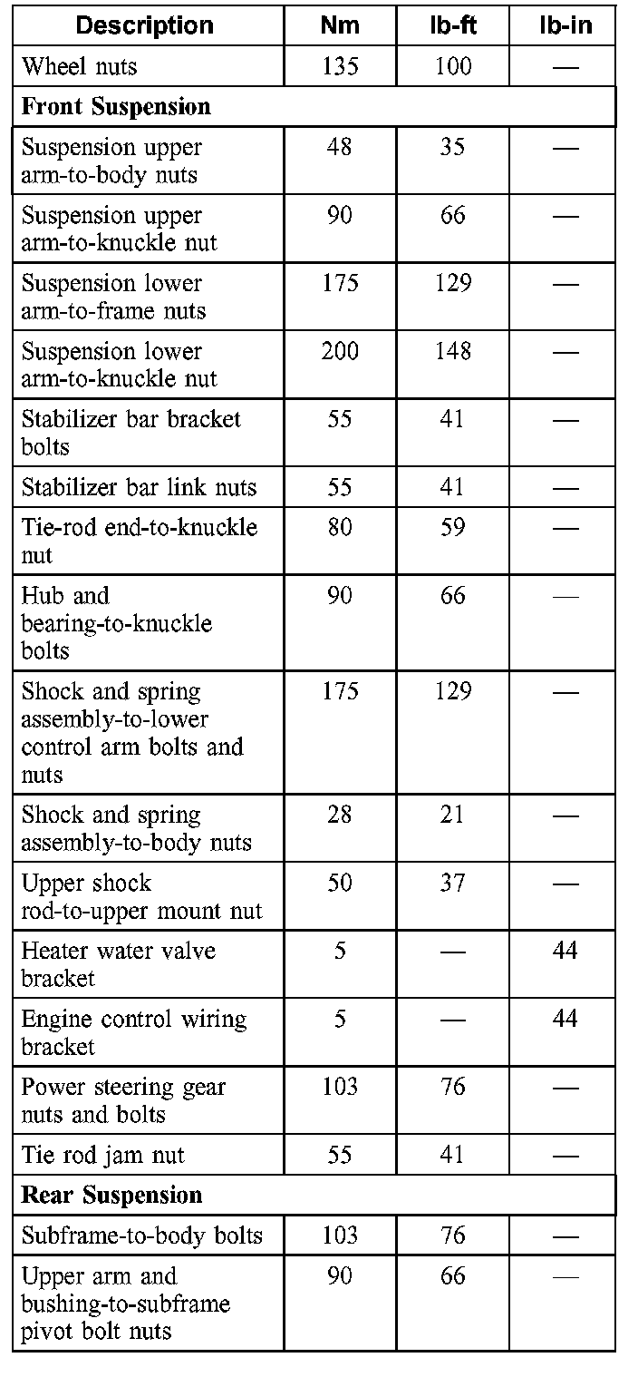 Torque Specifications