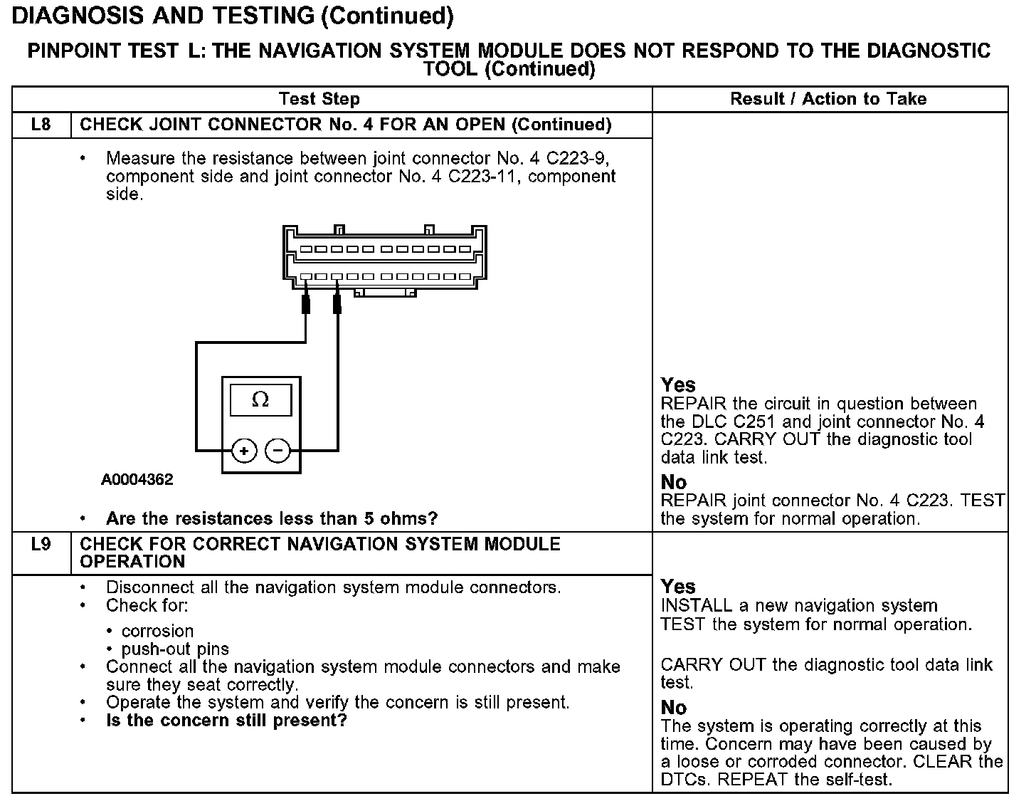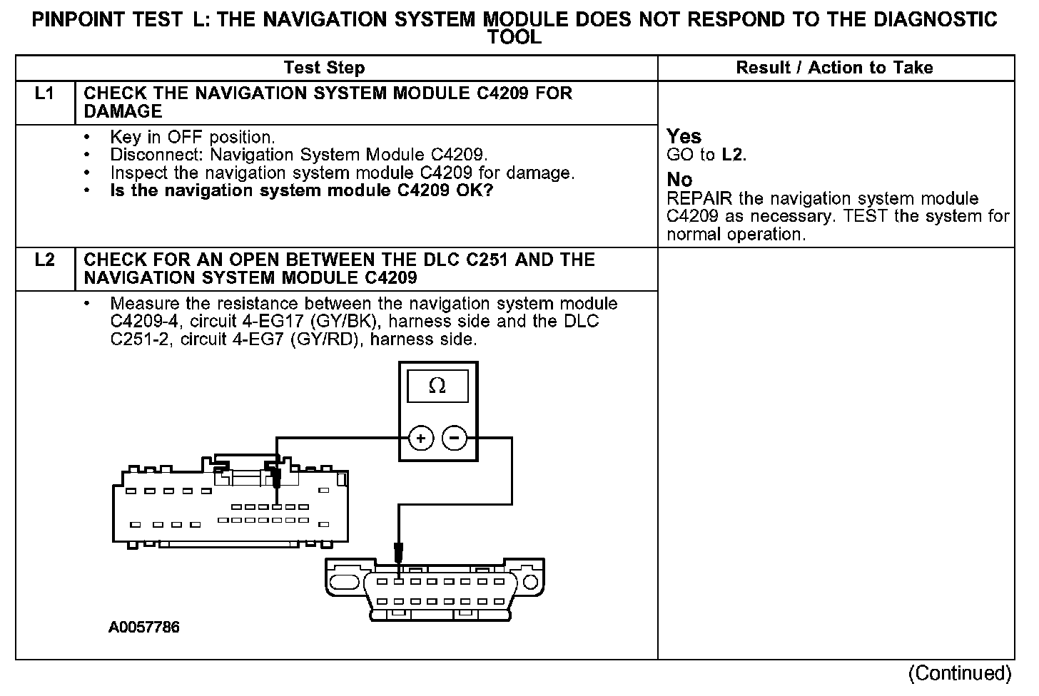 PINPOINT TEST L: THE NAVIGATION SYSTEM MODULE DOES NOT RESPOND TO THE DIAGNOSTIC TOOLTest L1-L2: