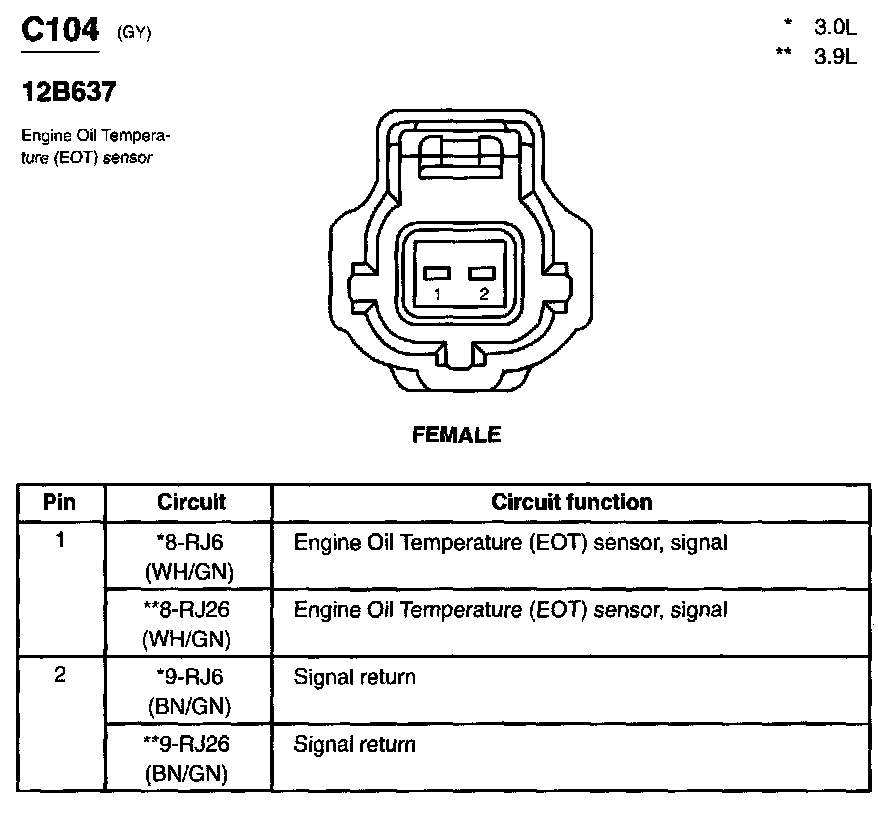Oil Temperature Sensor For ECM: Diagrams