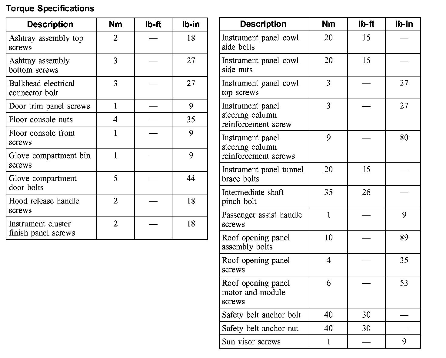 Torque Specifications: