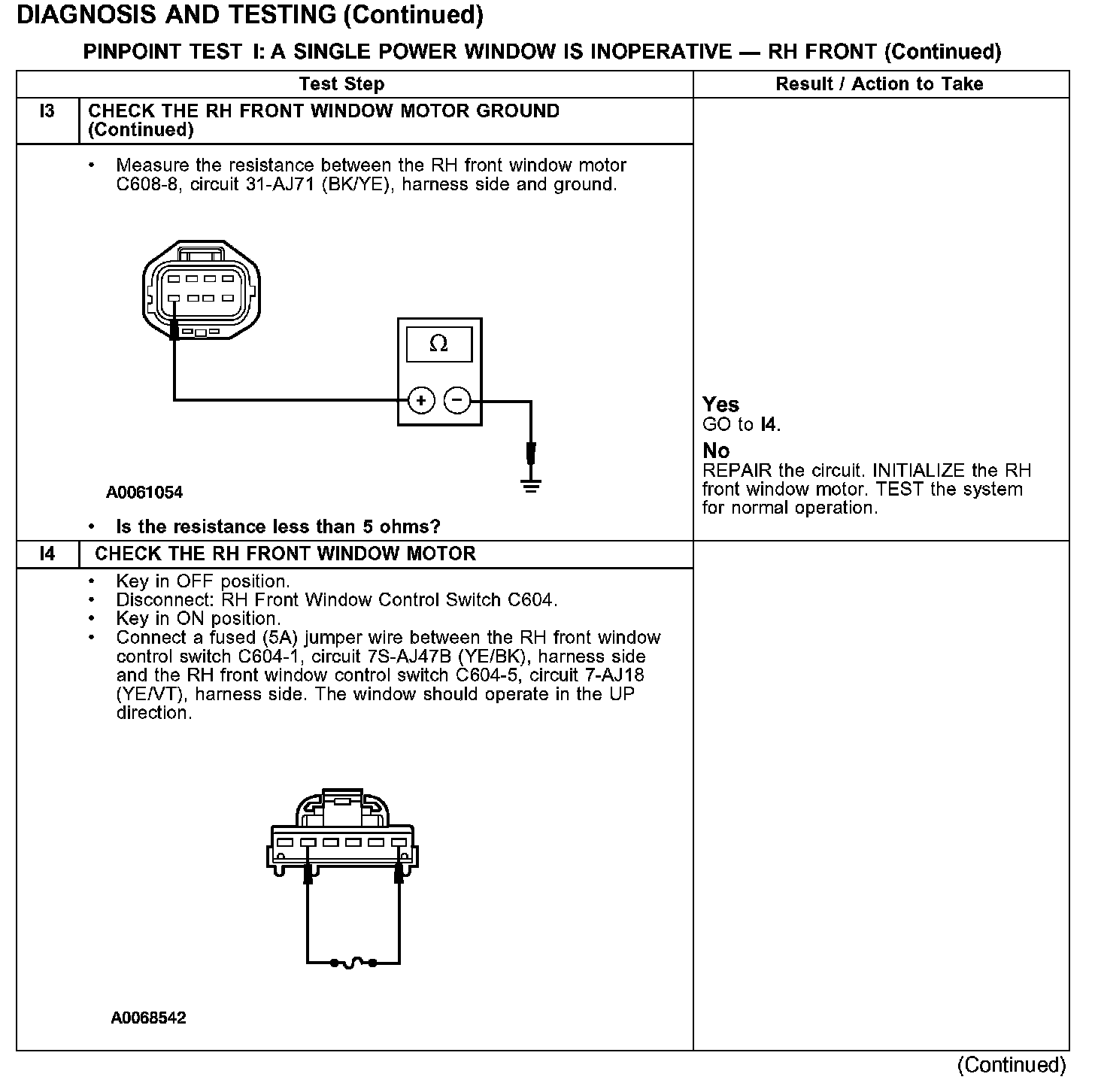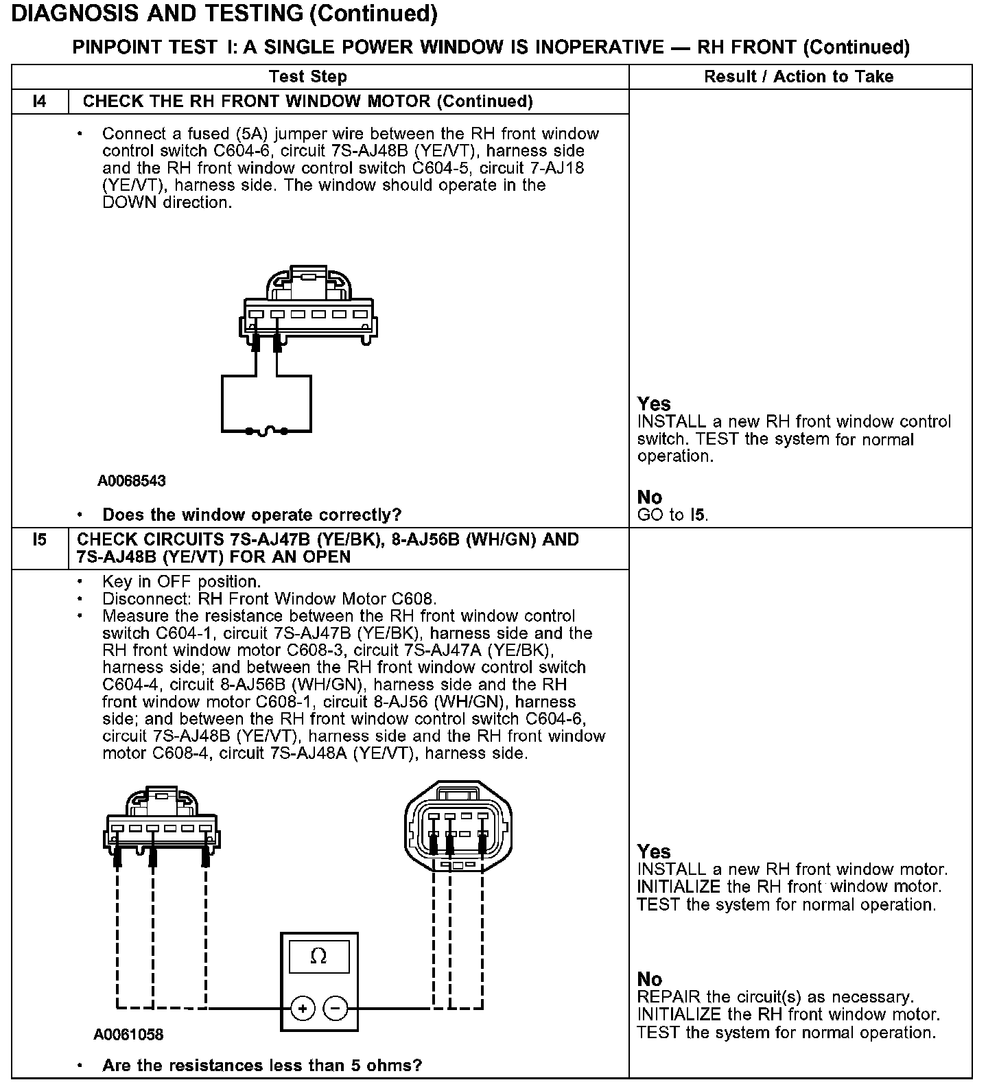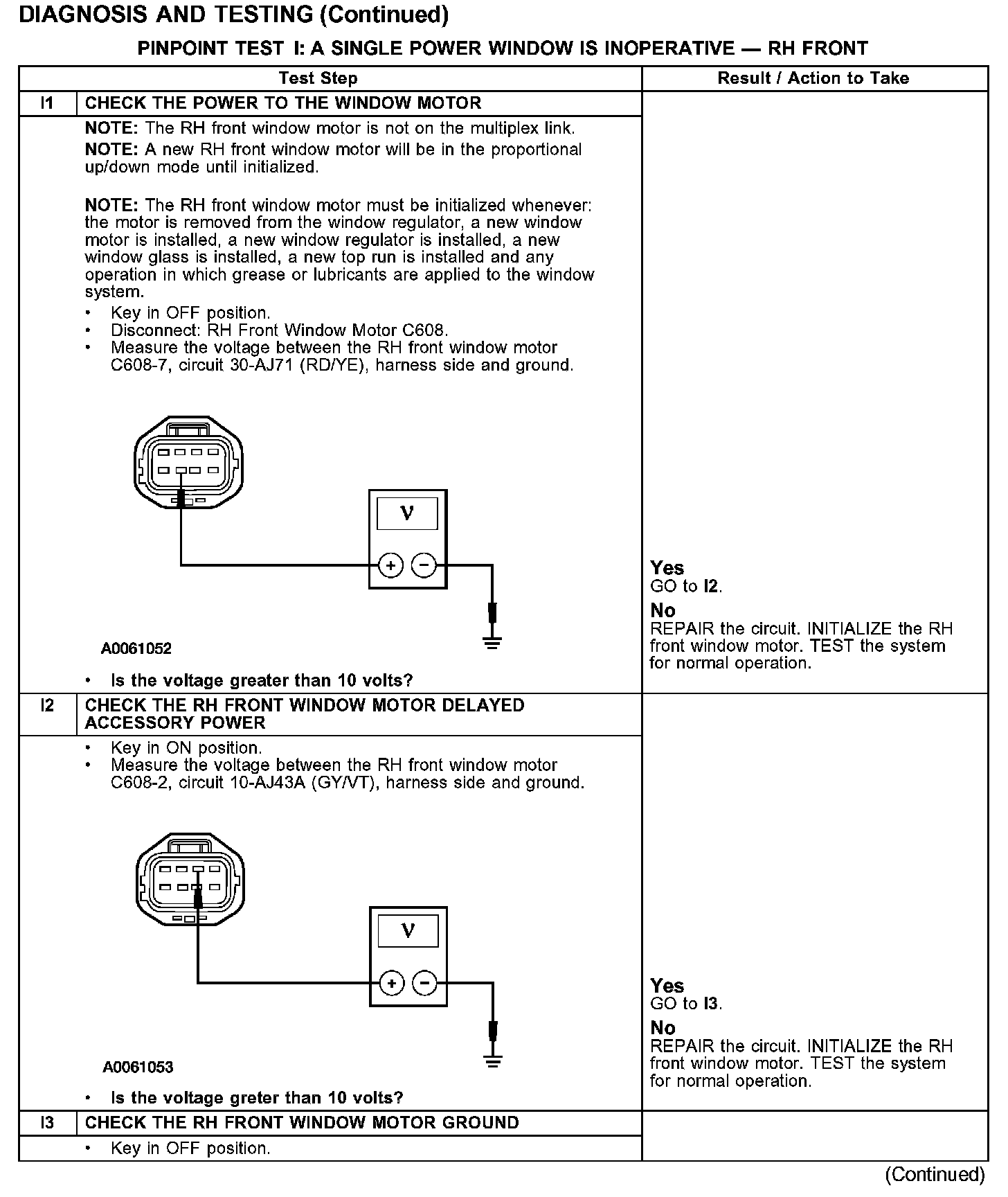 PINPOINT TEST I: A SINGLE POWER WINDOW IS INOPERATIVE - RH FRONTTest I1-I3: