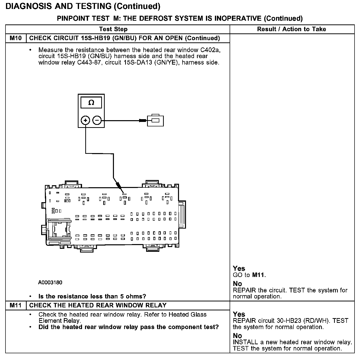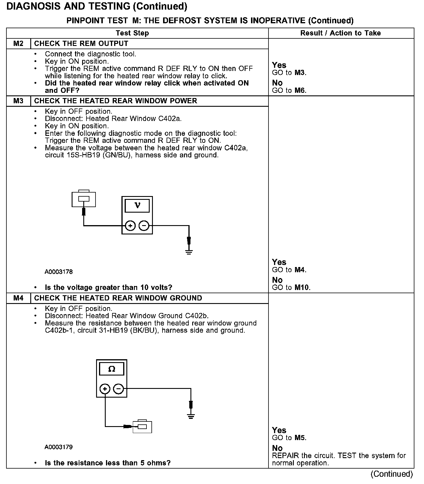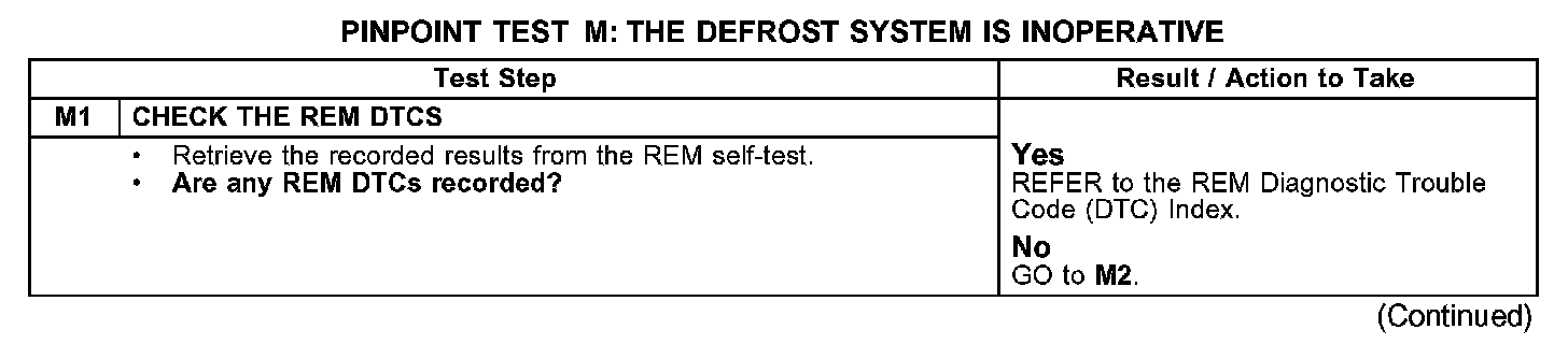 PINPOINT TEST M: THE DEFROST SYSTEM IS INOPERATIVETest M1: