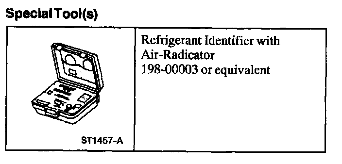 1. NOTE: An A/C refrigerant analyzer must be used to identify gas samples taken directly from the refrigeration system or storage containers prior to recovering or charging the refrigerant system.