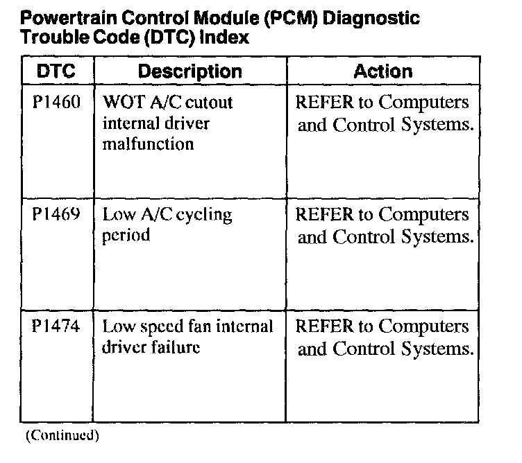 Powertrain Control Module (PCM) DTC Index