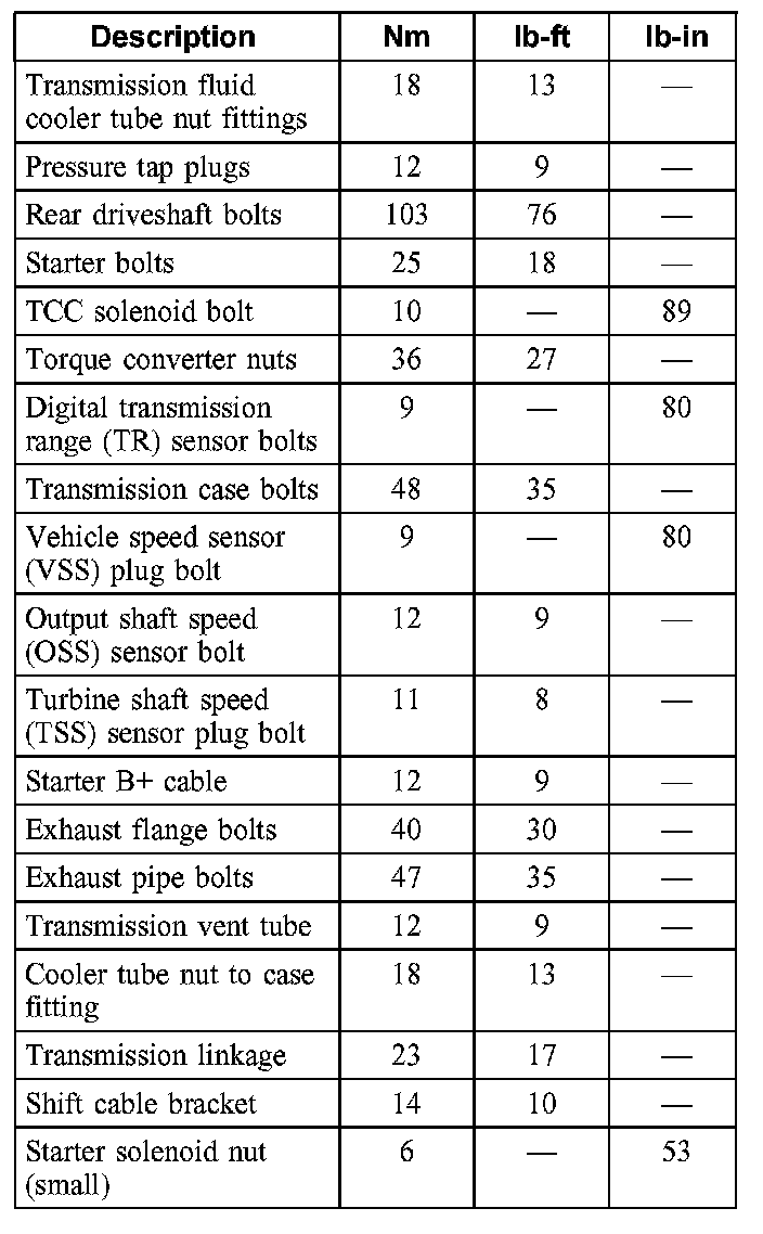 Torque Specifications