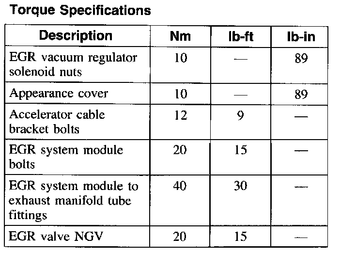 Torque Specifications: