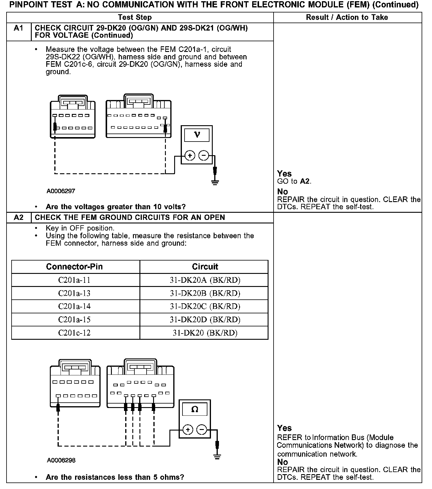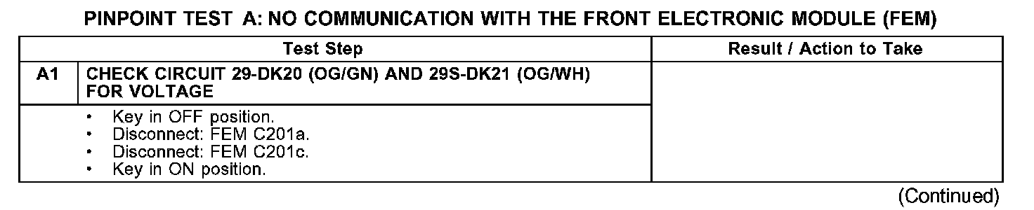 PINPOINT TEST A: NO COMMUNICATION WITH THE FRONT ELECTRONIC MODULE (FEM)A1: