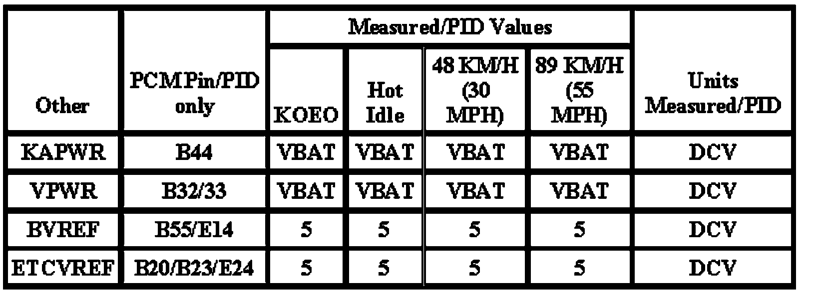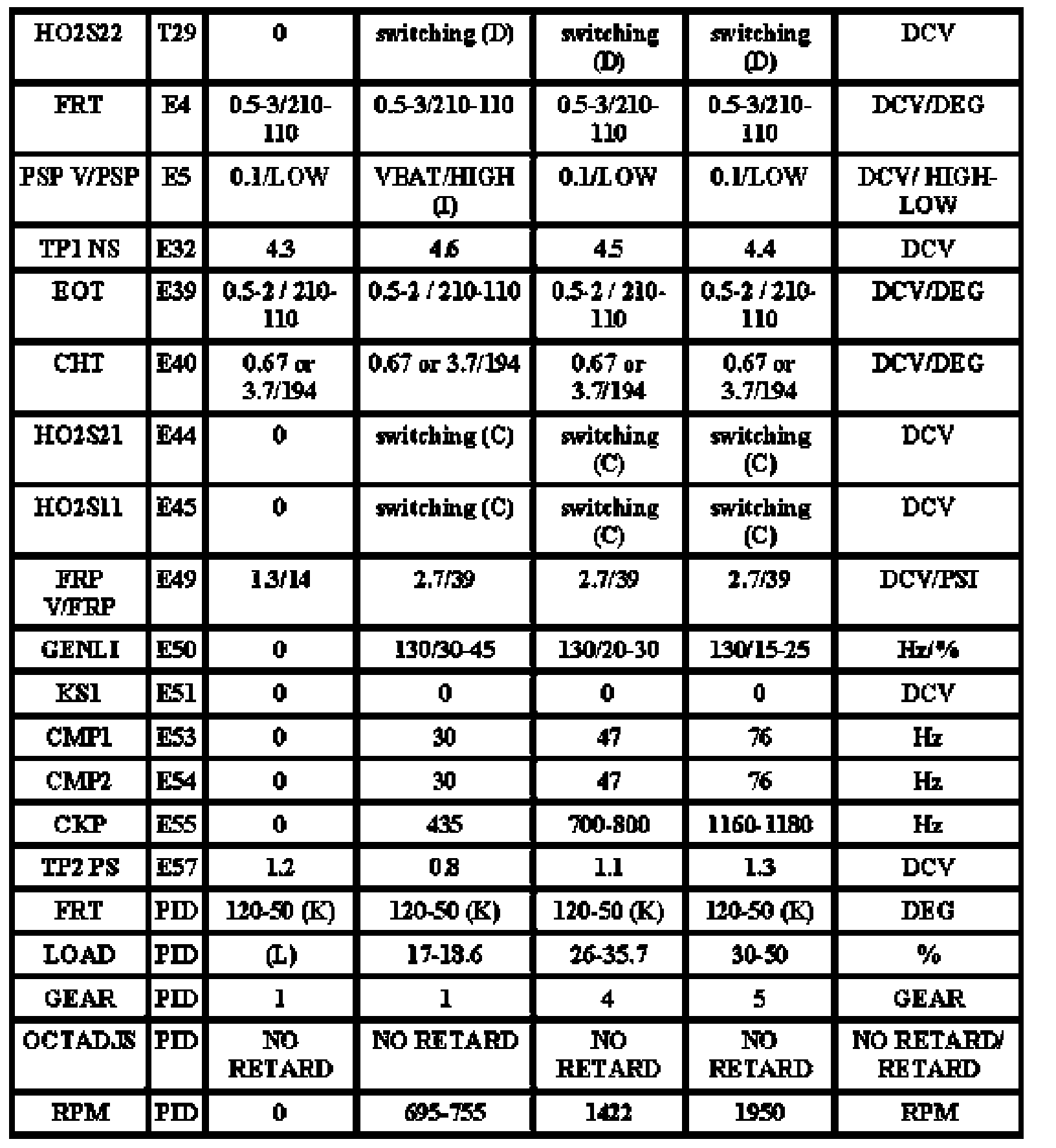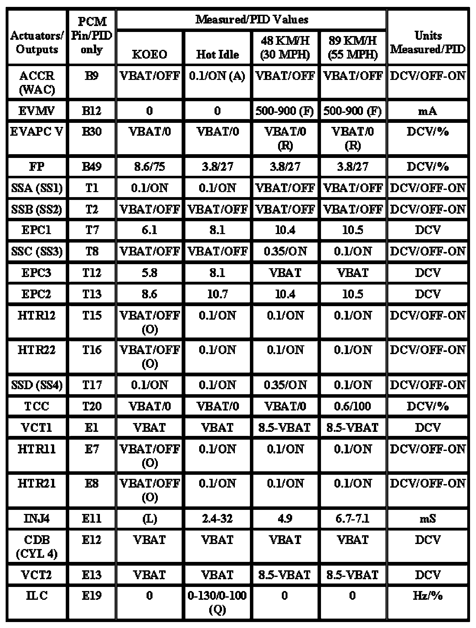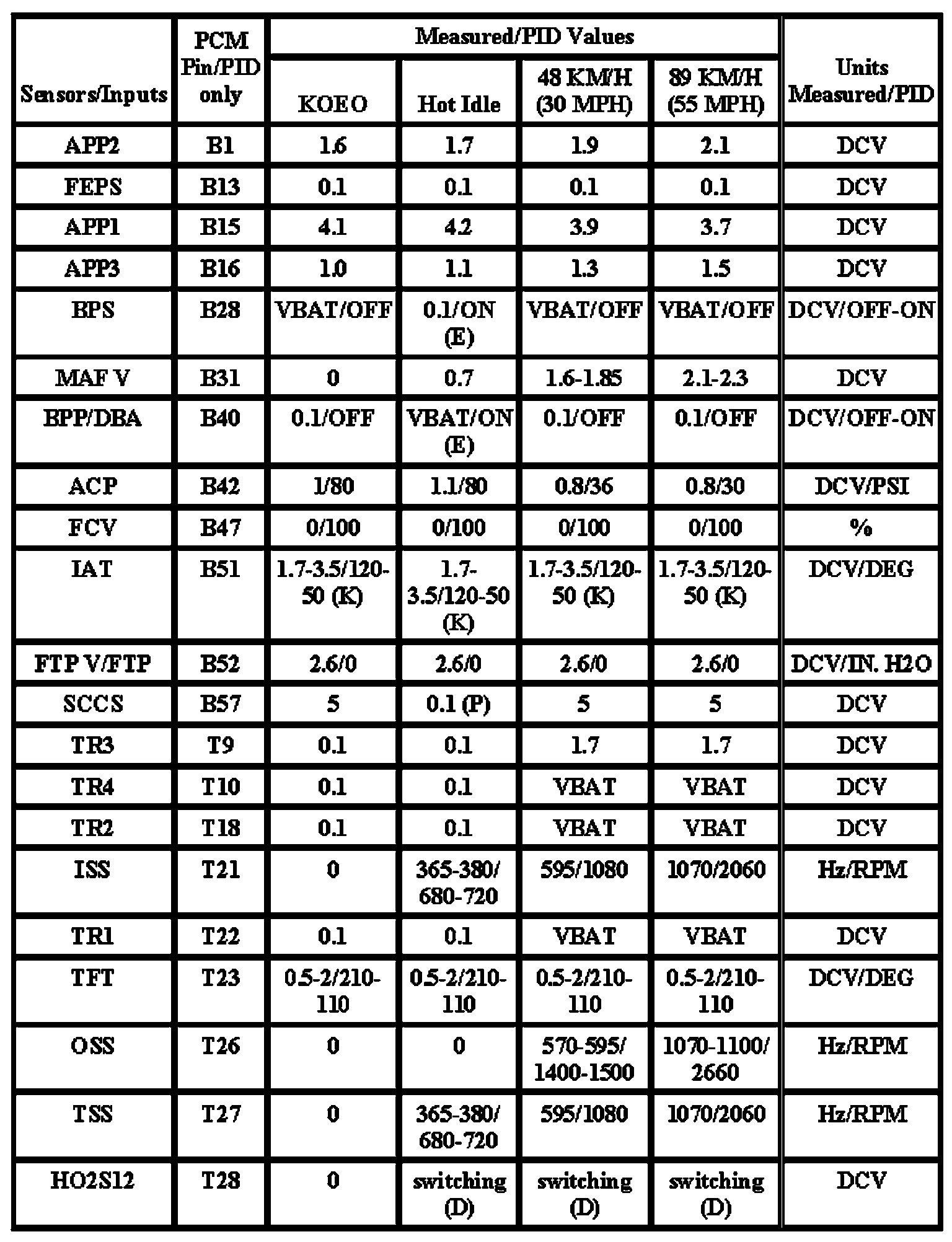 Note: All generic OBD readings under no load (PARK or NEUTRAL).