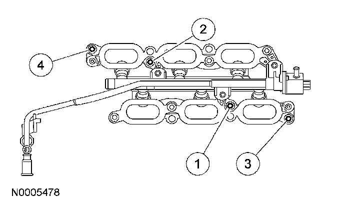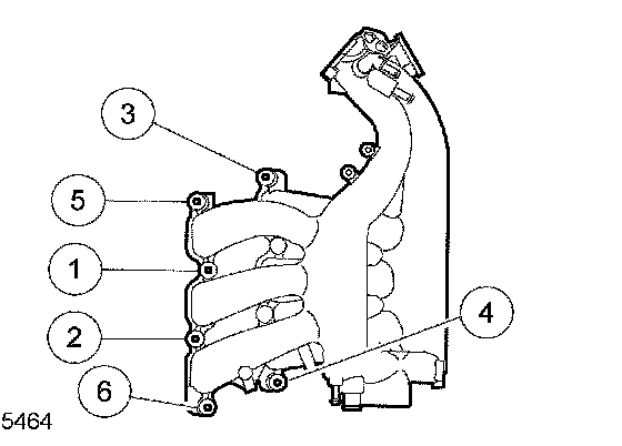 Tighten the upper intake manifold bolts in the sequence shown to 10 Nm (89 inch lbs.).