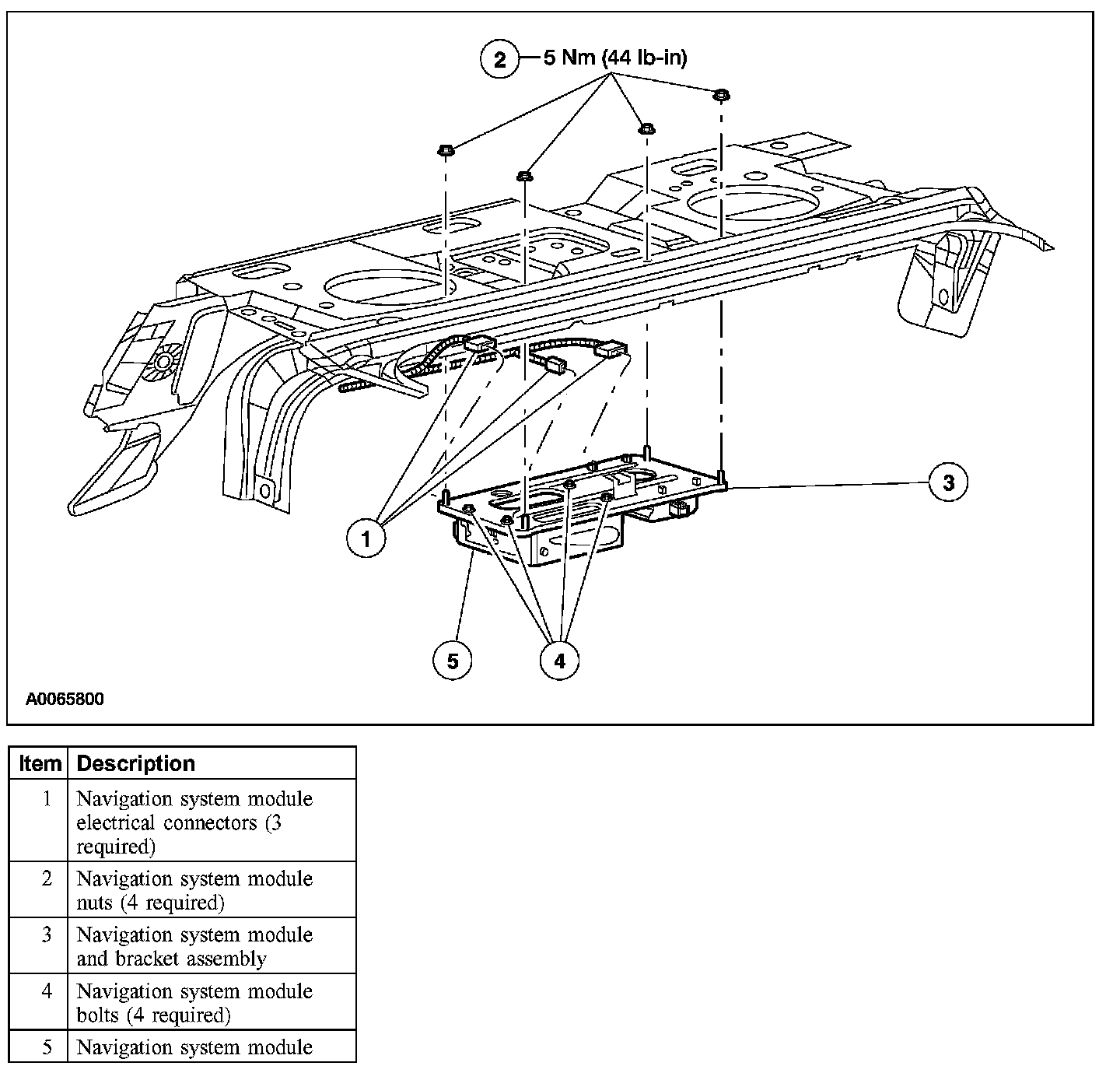 6. Remove the 4 bolts and the navigation system module.