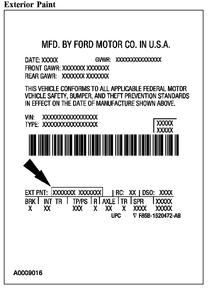 Exterior paint codes may be listed as a 2-part code. The first set of characters listed indicate the vehicle primary body color. The second set of characters listed (if applicable) indicate a 2-tone or accent body color. All codes are base coat/clear coat.