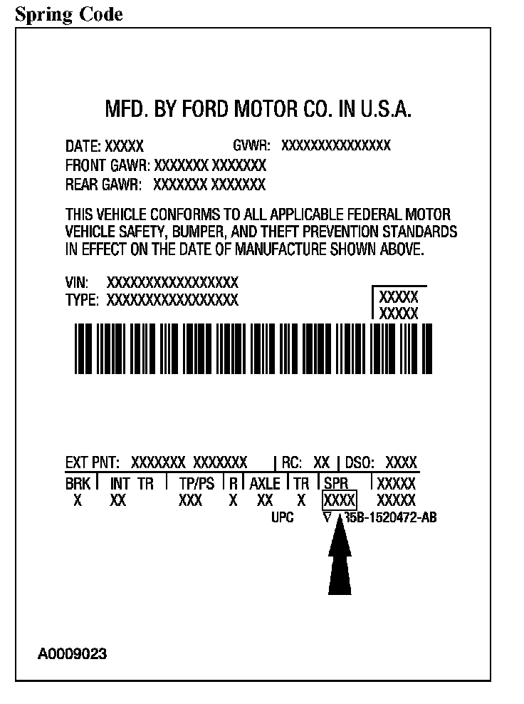 Spring codes are listed as a 2-part code. The first set of characters listed identify the front springs. The second set of characters listed identify the rear springs.