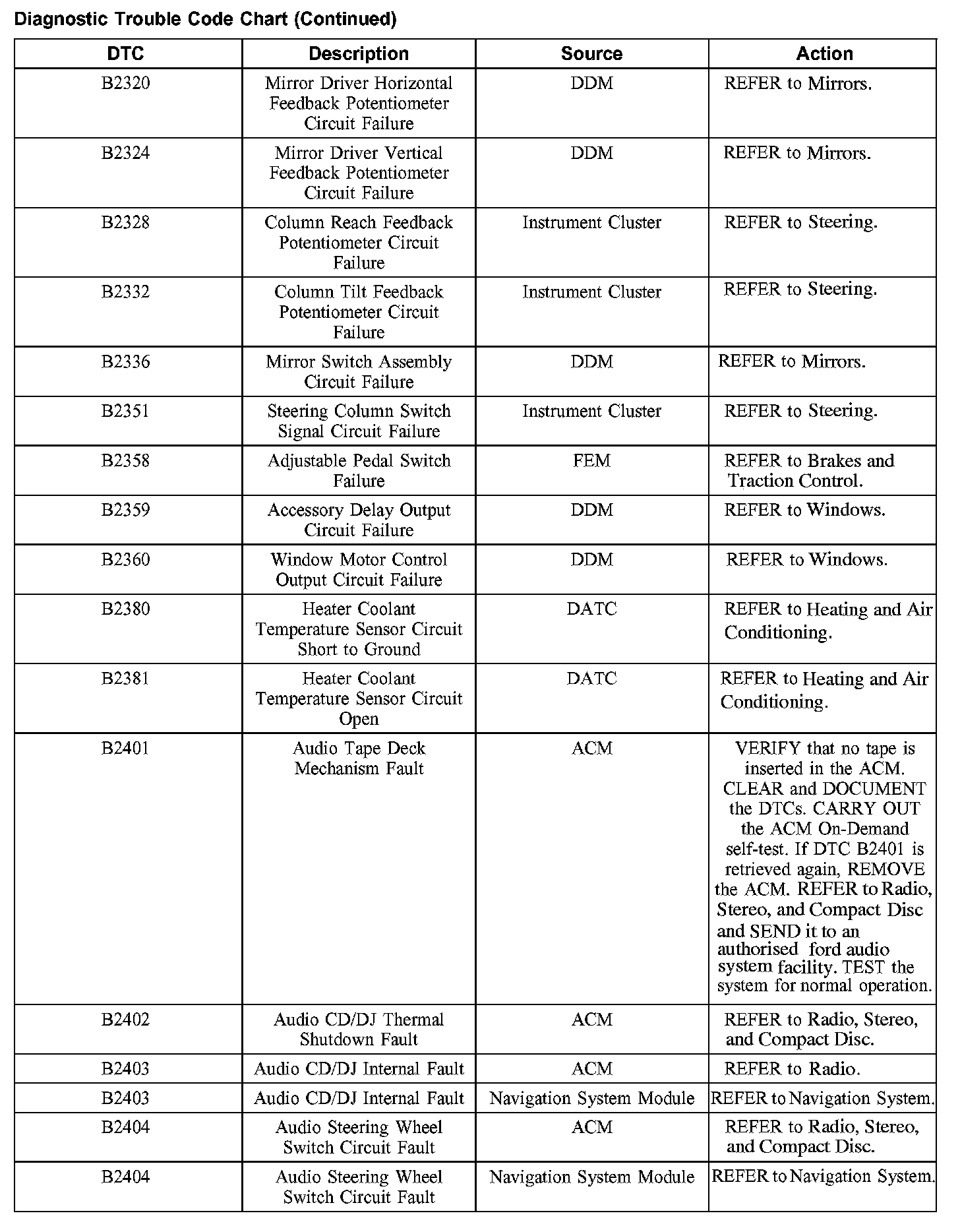 DIAGNOSTIC TROUBLE CODE CHARTB1201-B1300: