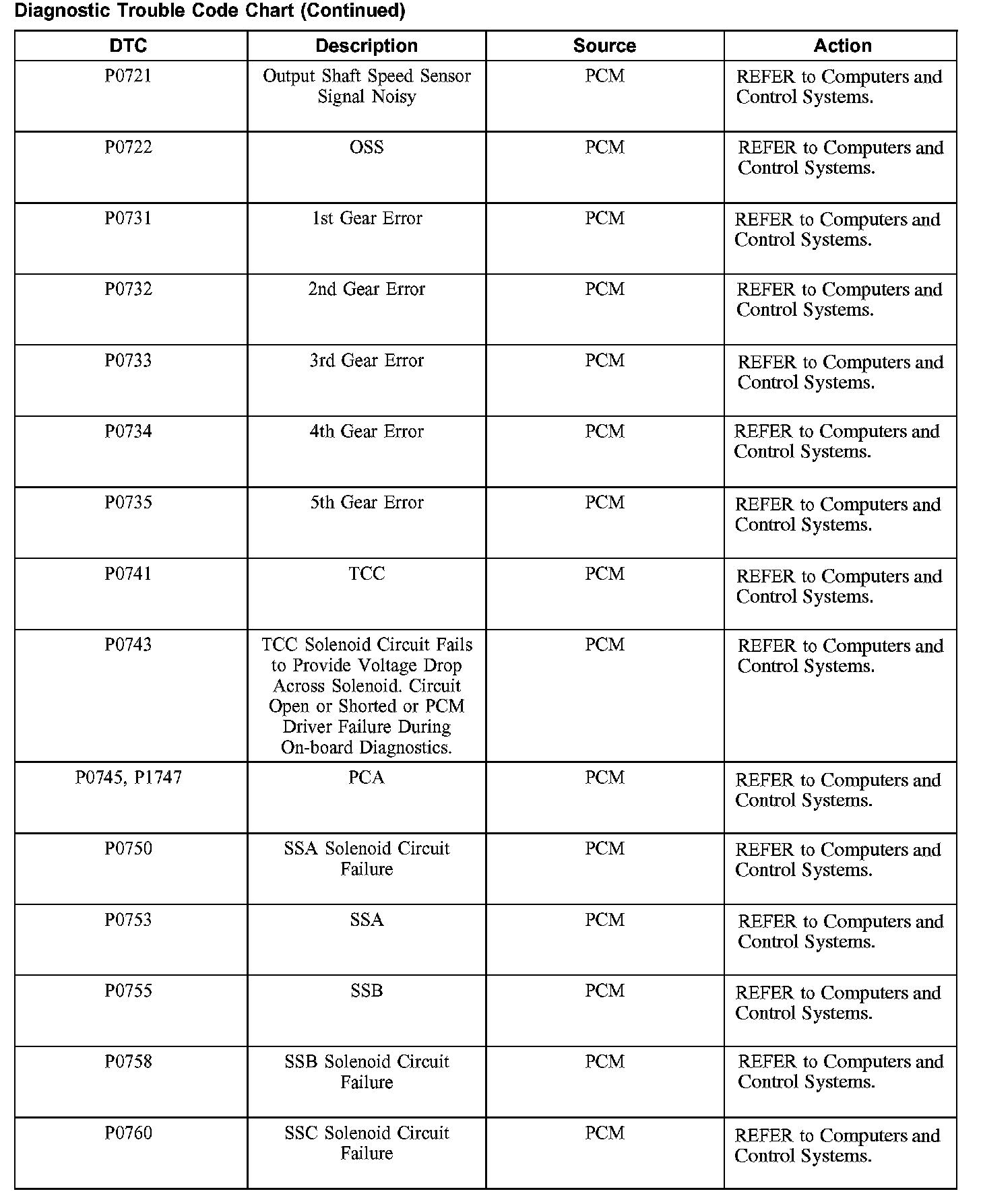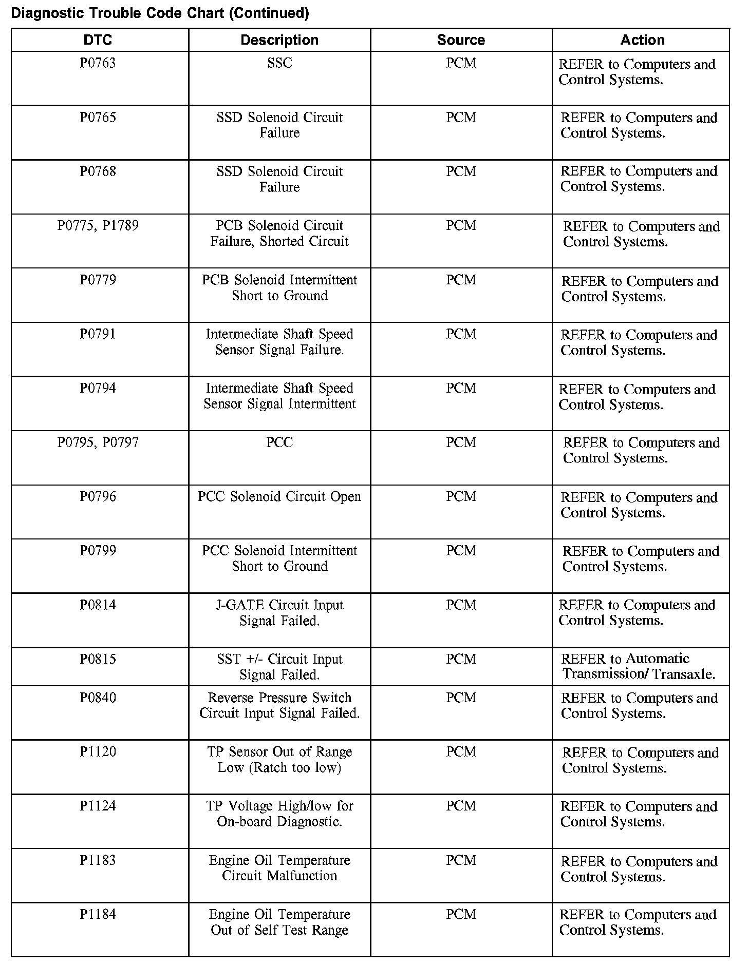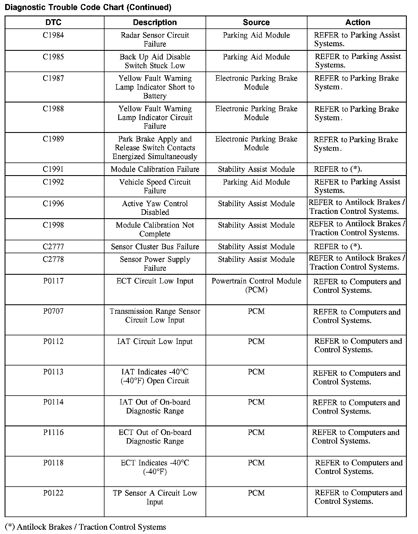 Diagnostic Trouble Code Descriptions