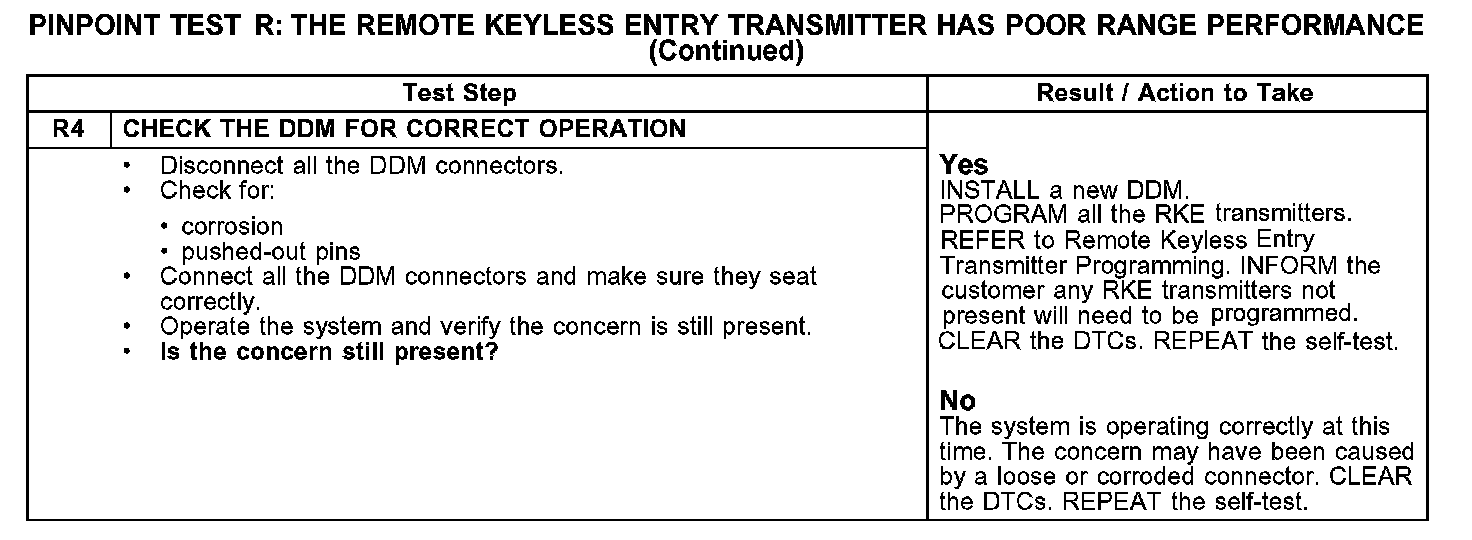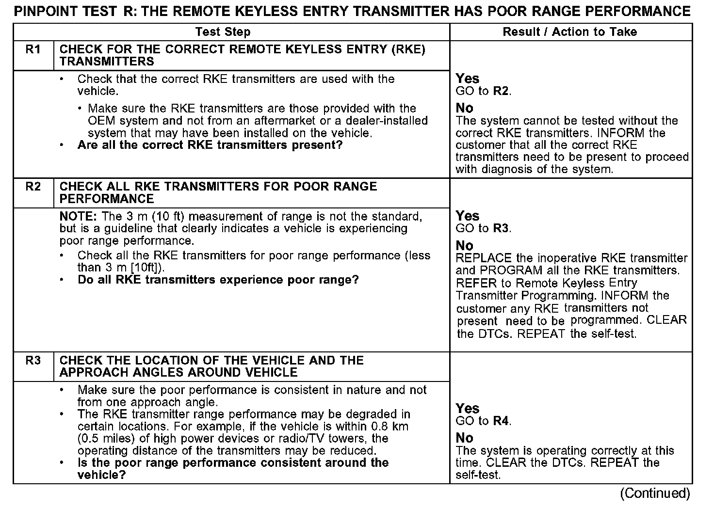 PINPOINT TEST R: THE REMOTE KEYLESS ENTRY TRANSMITTER HAS POOR RANGE PERFORMANCER1-R3: